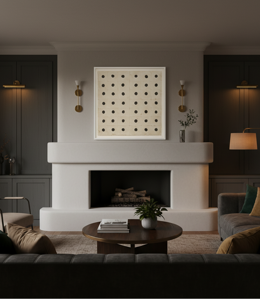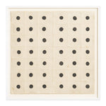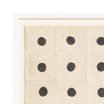 Bring refined simplicity to your space with this minimalist, high-texture artwork inspired by organic repetition and timeless balance. Featuring a hand-painted grid of imperfect black dots on richly textured handmade paper, each mark reveals subtle variations that celebrate the beauty of human touch. The off-white background and visible creases give depth and dimension, while the crisp white frame lends a clean, modern finish.
