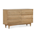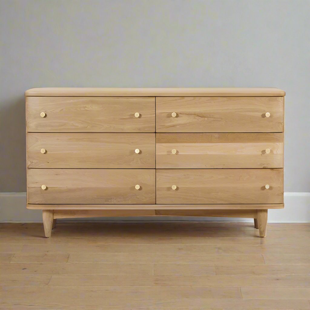 The Veda dresser is a dramatic addition to any master bedroom. This FSC certified white Oak dresser is sculptured with soft edges. The textured surface is finished in a water-based charcoal finish. It features 6 drawers that open smoothly to reveal ample space for storage.
