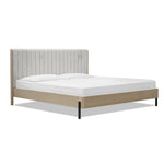 The Nori bedroom collection features two styles in white oak, the perfect marriage of simplicity and style. All Nori pieces including the beds have black powder coated steel legs that extend over the wood giving it a chic modern look. The full collection offers a night stand, bed, chest and dresser. Choose between a natural or blackened white oak wood finish.