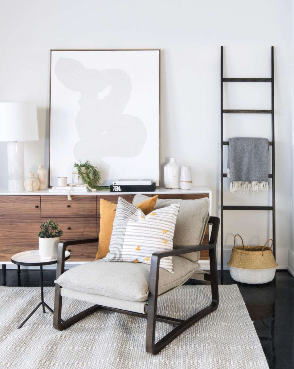 Khaki brush strokes create a calm and seductive, low-contrast piece.