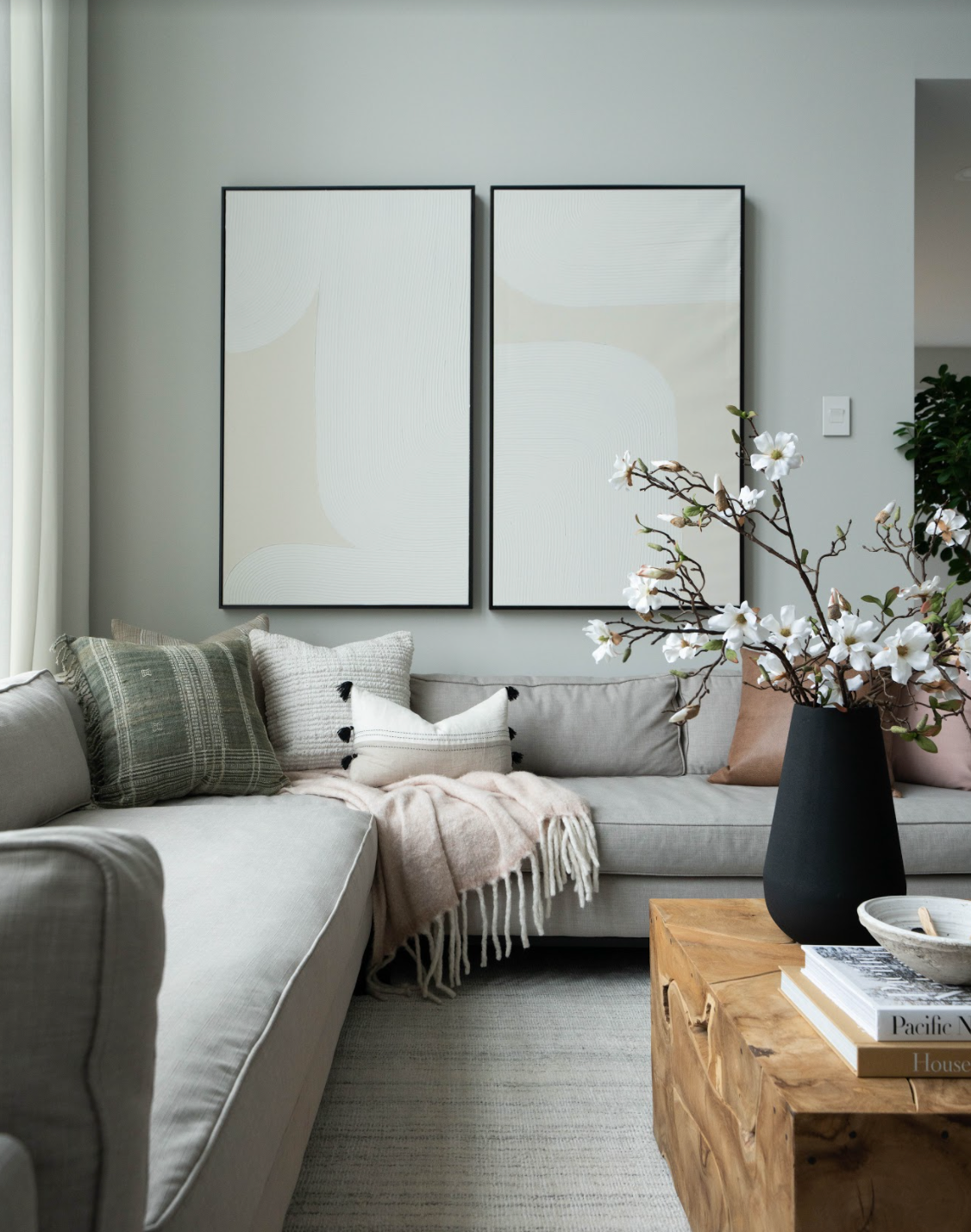 This hand painted soft, neutral canvas will add a calming effect to your space.