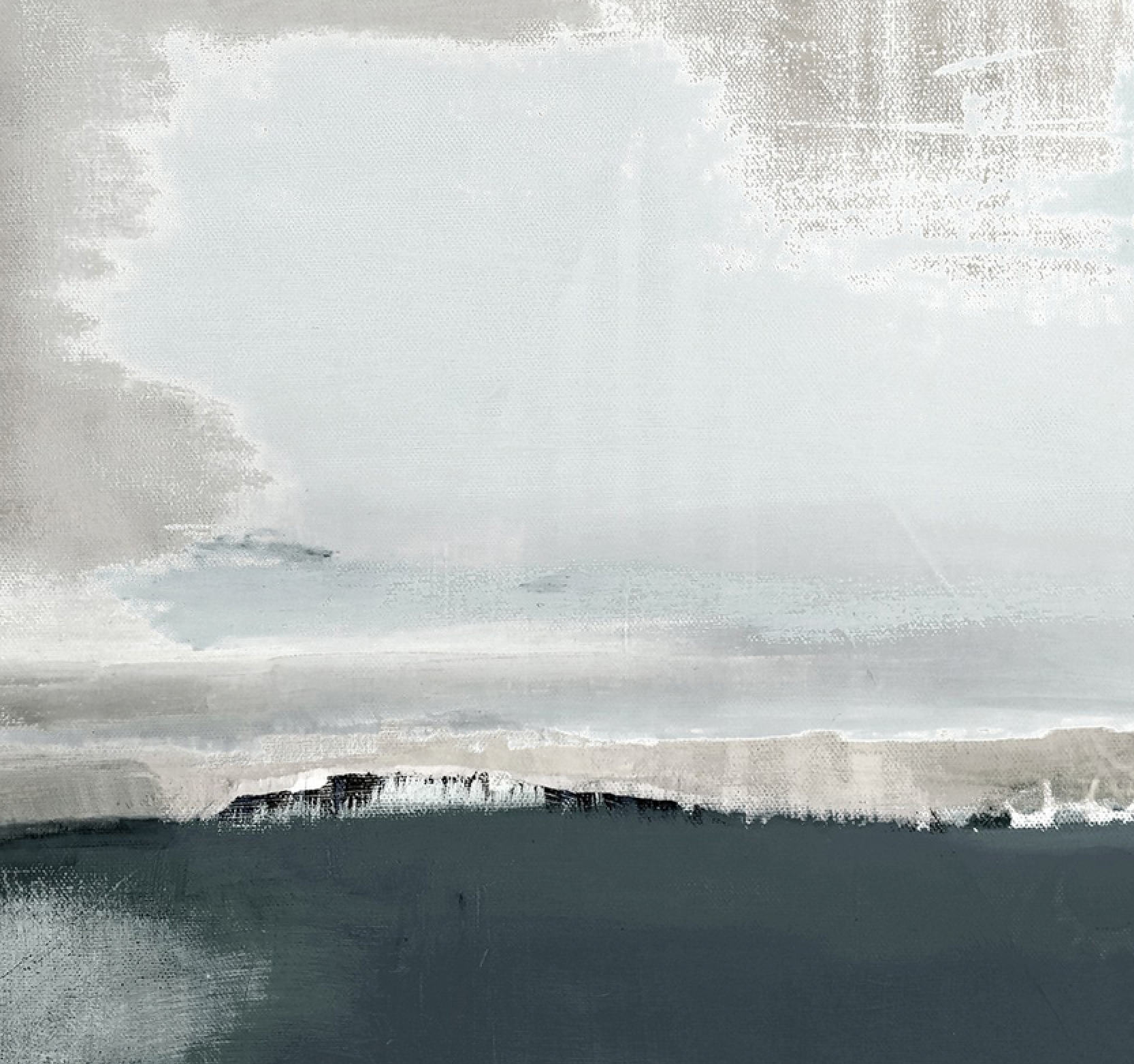 An artist enhanced gallery wrapped abstract canvas in dark hues.