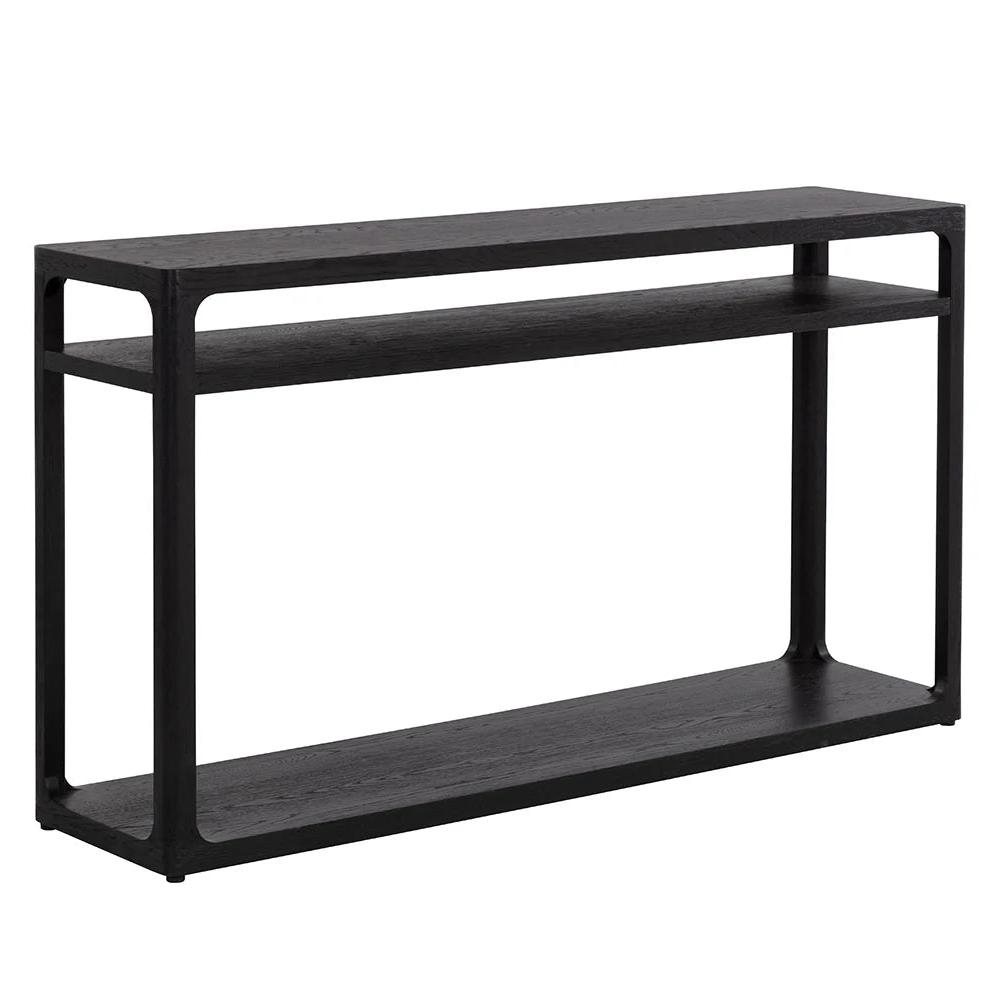 With a clean and modern composition, the Doncaster Console Table will add minimalist style into any space. Crafted from a black solid oak wood frame with a black oak veneer. As wood is an organic, porous material, these pieces will contain natural variation of texture and may also exhibit fine indentations and cracks. Wood pieces will also display a disparity of colour and grain, and visible knots and burls that add to the character of each piece.