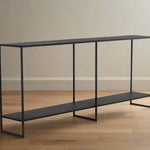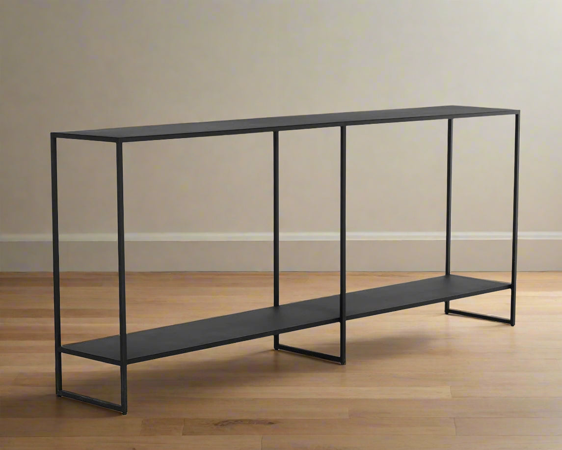 Add style and warmth to living and office spaces with the well-designed Eiffel Console Table in black iron. Can be styled behind a sofa or in a hallway or entryway for added impact and functionality.