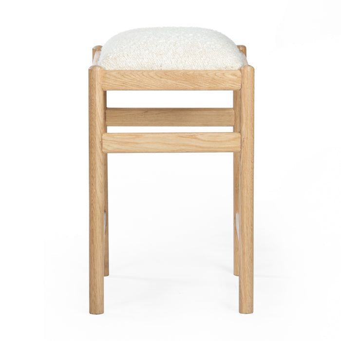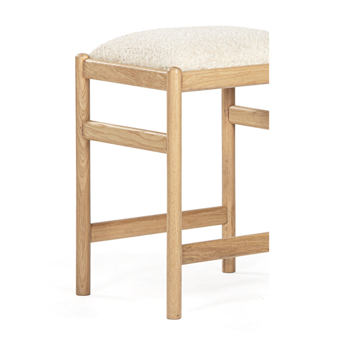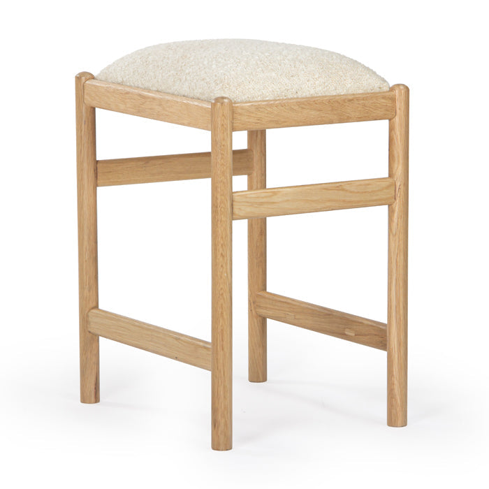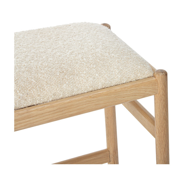 A simple modern piece you can’t go wrong with. This backless counter stool boasts a boucle upholstered seat.