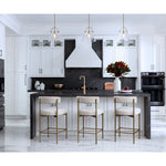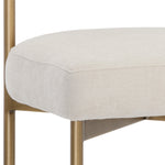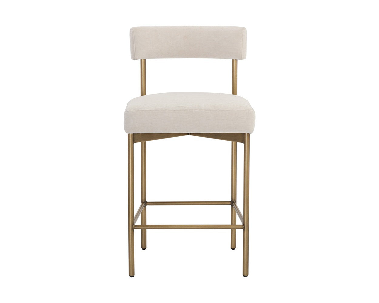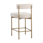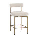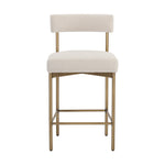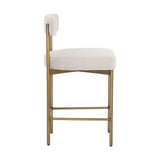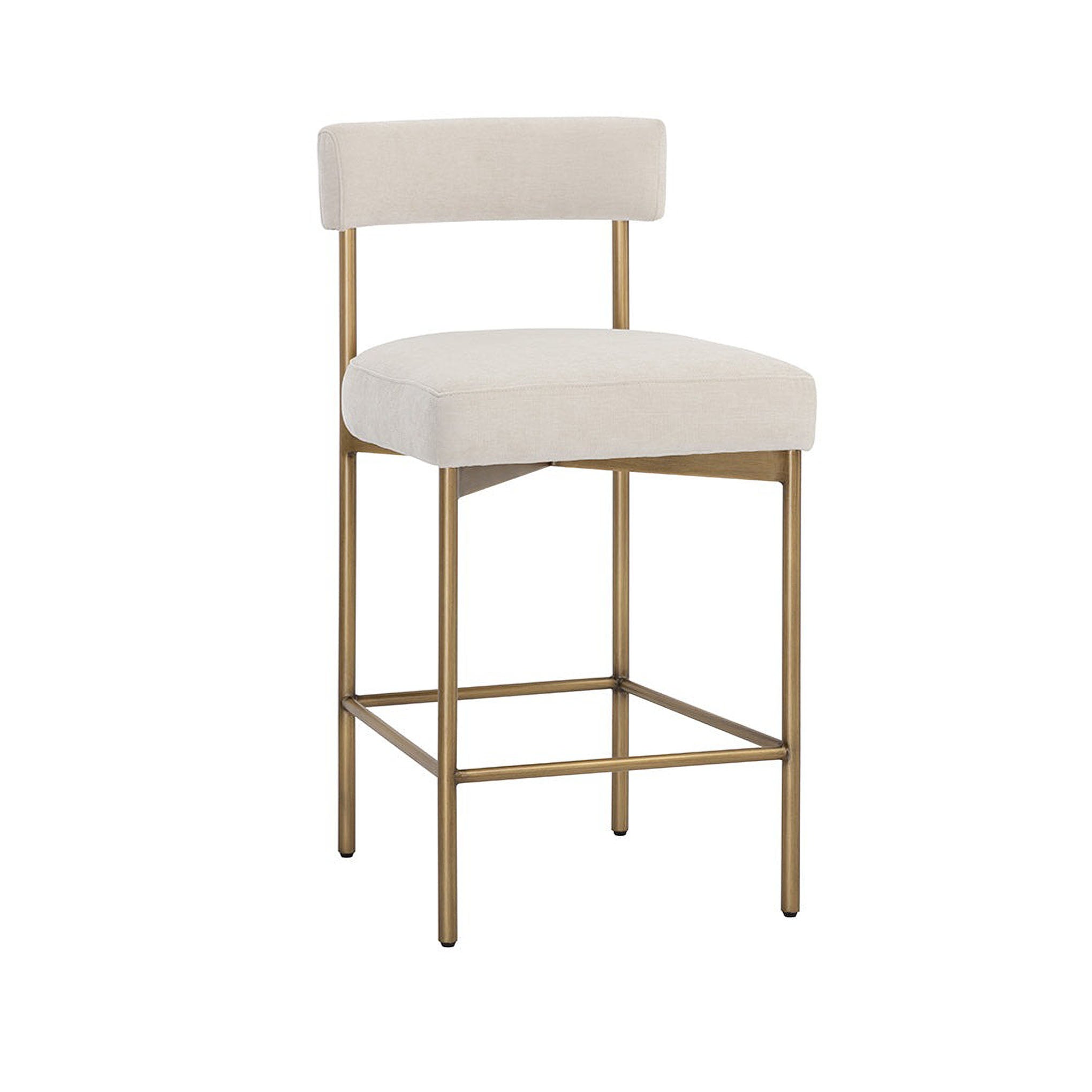 Exude modern style with this open back counter stool. Stocked in danny ivory fabric with an antique brass steel frame.