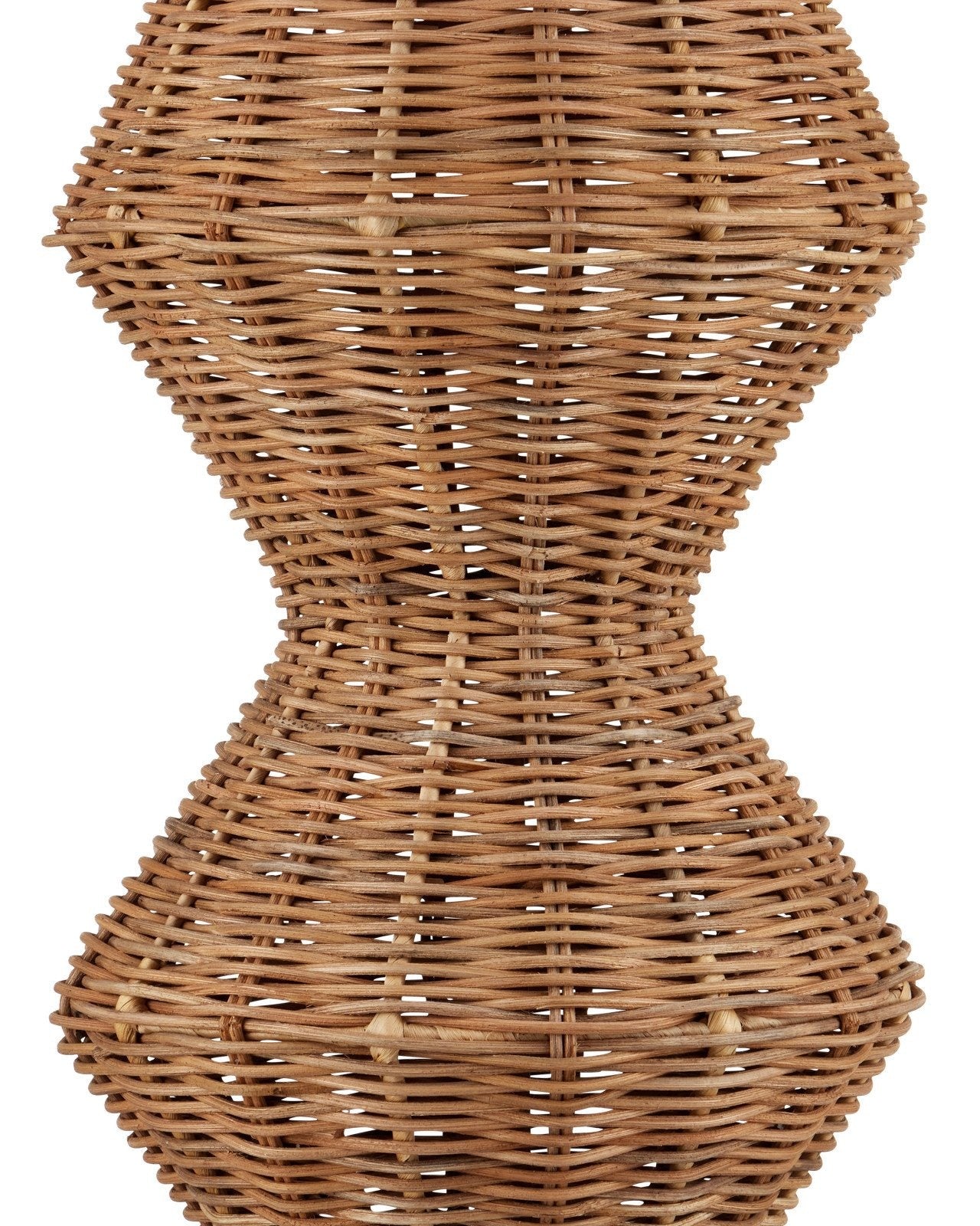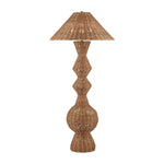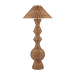 Aberdeen Grande Floor Lamp has an overscale geometric body made of cane rattan from which the skin was stripped to give the natural material a matte texture. The flared empire shade is made of thicker rattan to provide the floor lamp with an Asian-inspired flair. Three bulbs emit an abundance of warm illumination, and the Nirvana turns on and off with an inline foot switch.