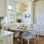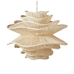 Six layers of rattan, whose densely braided edges coax them into waves, form the abstract shape of the Adora chandelier inspired by flowers. Such sculptural form provides a soft diffused light and definitely a statement piece in your space.