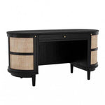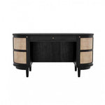 The Arlo desk embraces curves. Sculpted from FSC certified White oak wood and cane, it features a charcoal finish. Housing one smooth sliding keyboard drawer and two hinged doors, this desk has ample storage space to fulfill your needs.