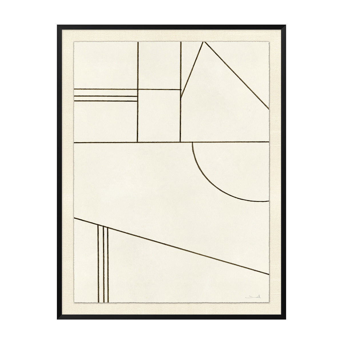 Simple lines and angles on hand deckled watercolour paper, framed in a black shadowbox.
