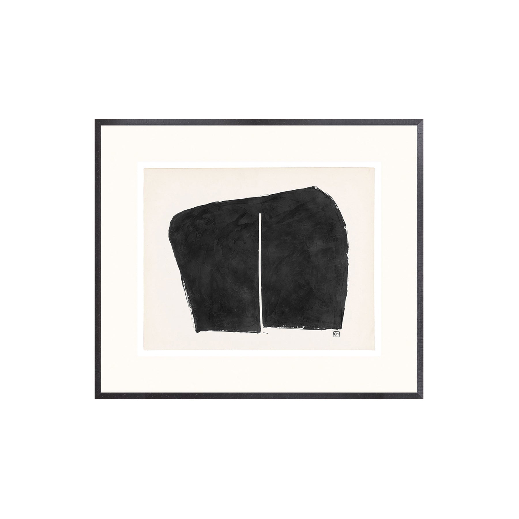 The cream popping through settles the large black pieces on the print. It is framed in a nice brown stain.