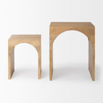 Raw, yet refined, this set of two, light brown, nesting accent tables has been expertly crafted out of solid mango wood and features a beautiful arched design and quality woodwork that shows off the wood’s beautiful grain.