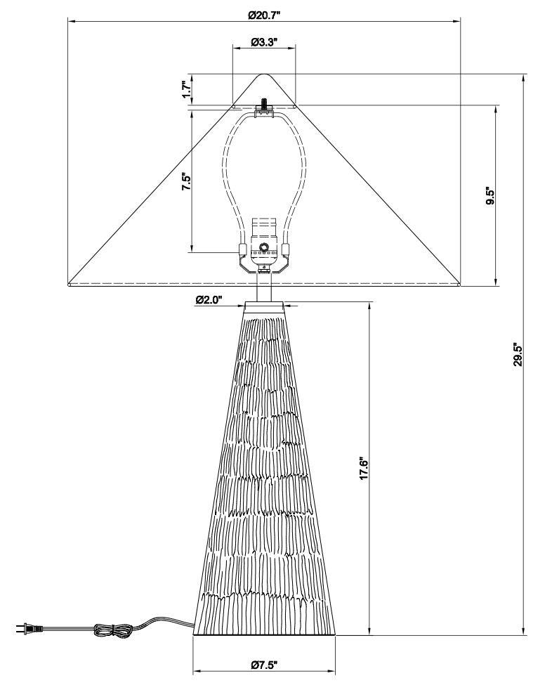 SHADE: tapered drum; 3.25″ø(t) x 20.75″ø(b) x 9.75″H