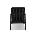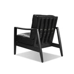 The Craftsman chair is made from a solid ashwood frame and upholstered in top grain leathers. It features a unique back cushion support made from Straps and bronzed buckles. Choose from black stained ash frame with black leather or light walnut stained ash from with balck or tan leather.