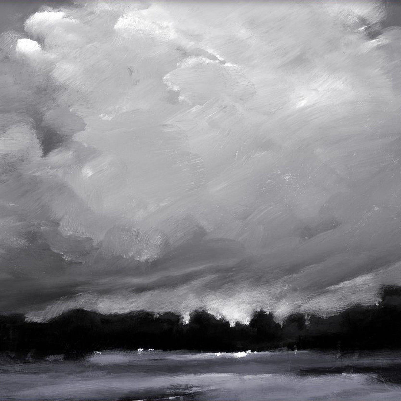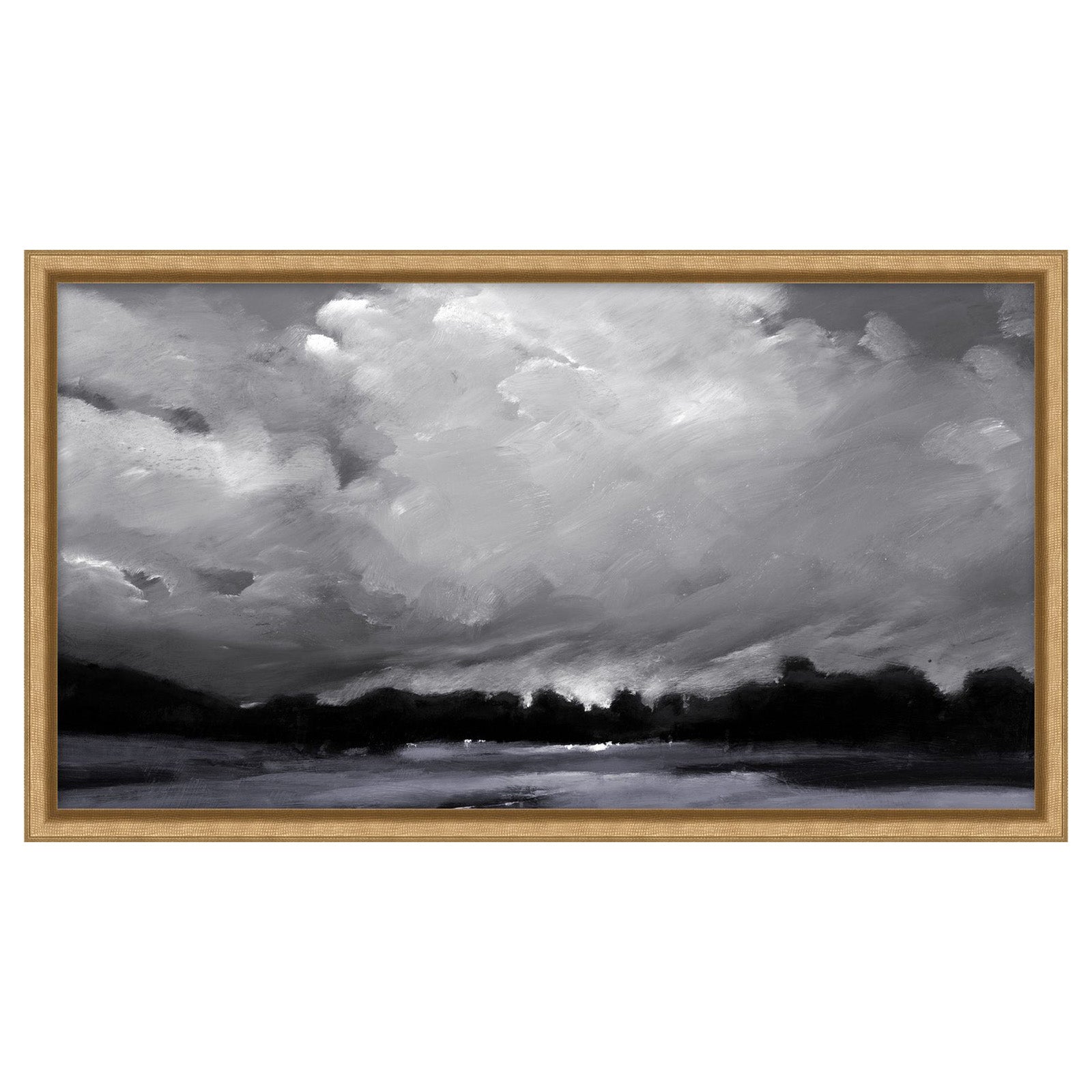 Dark sky filled with brushed grey clouds with a gold frame.