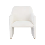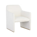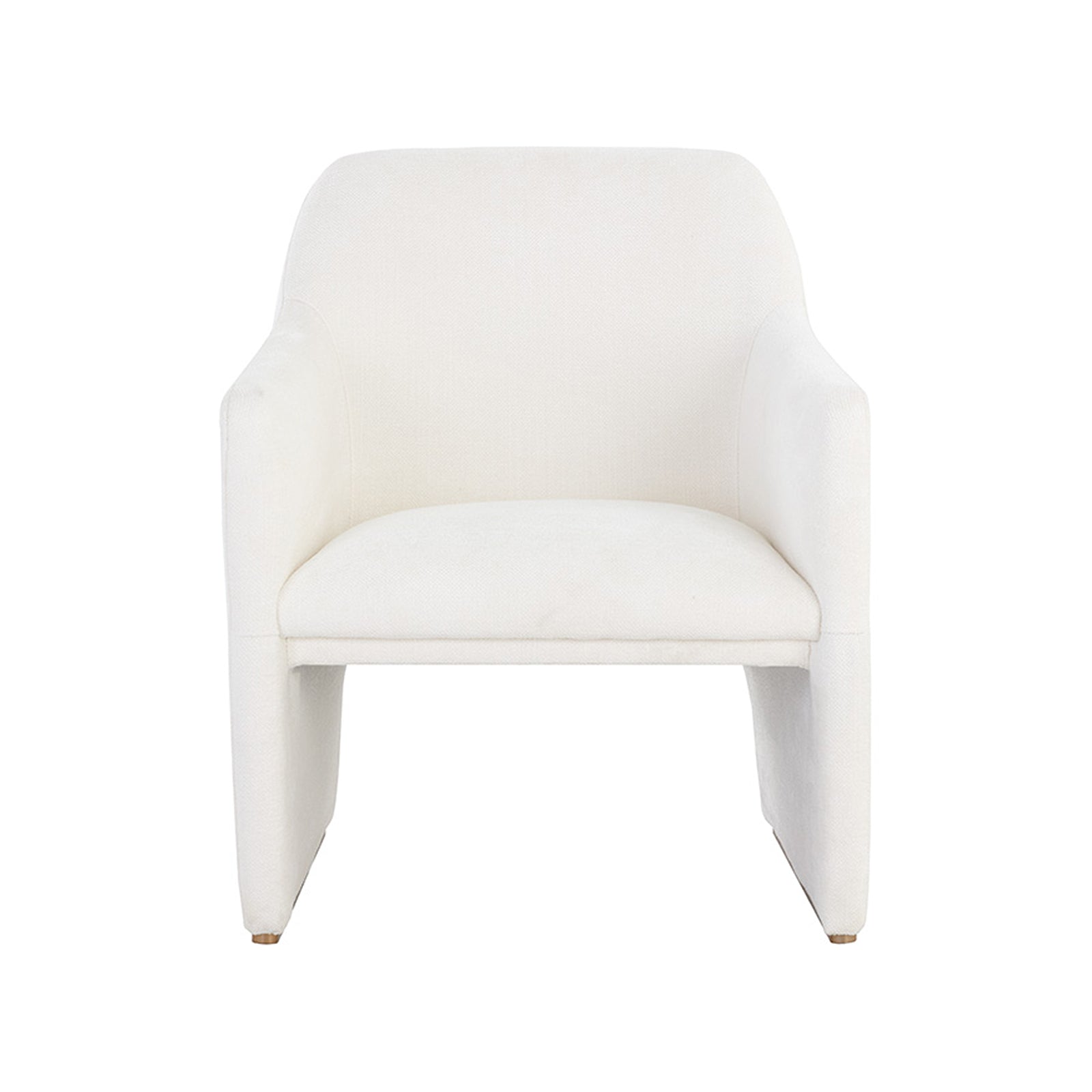 Sleek and modern, the Darleen Armchair features a brass base and crisp white upholstery.