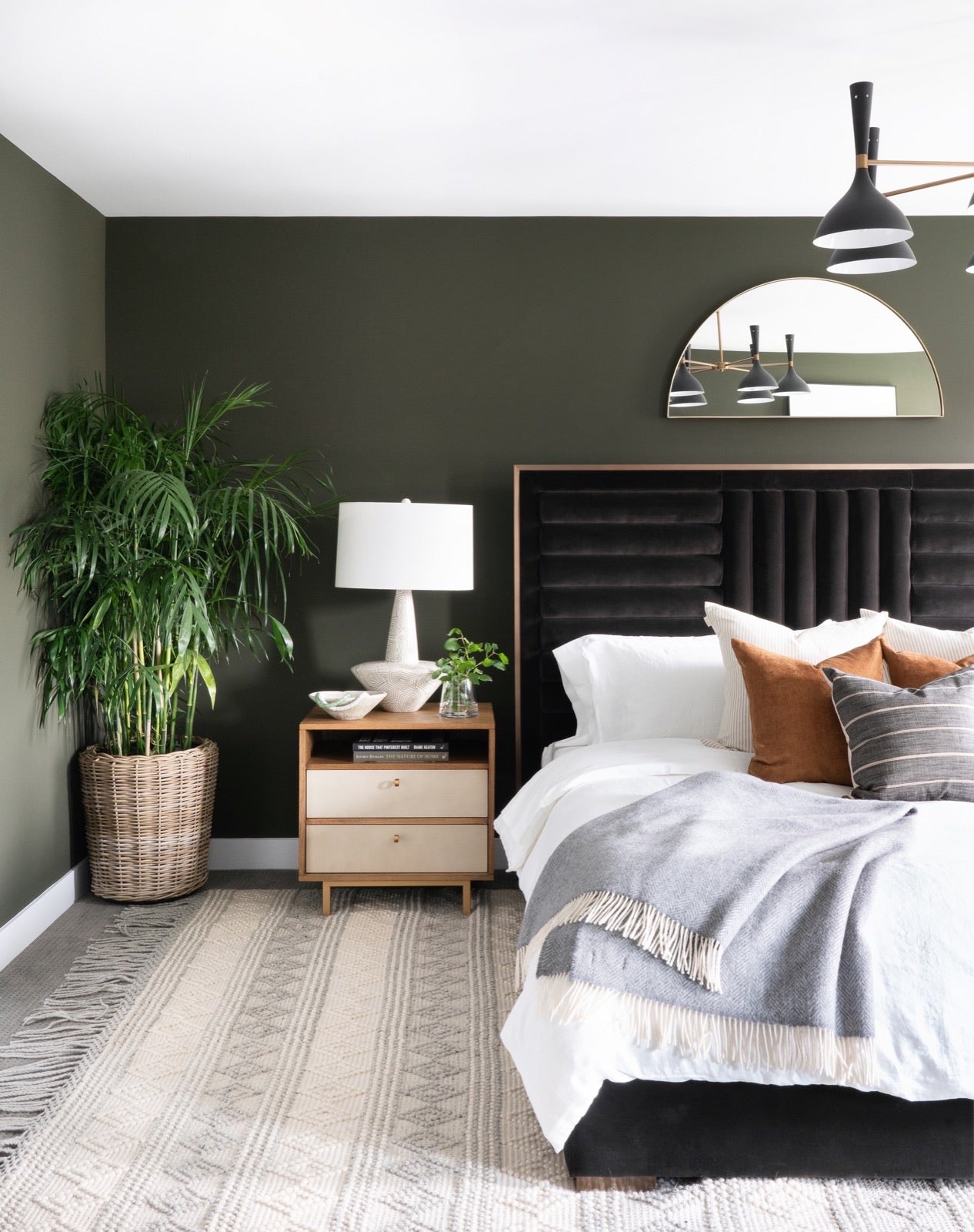 Half-moon mirror with a gold frame.