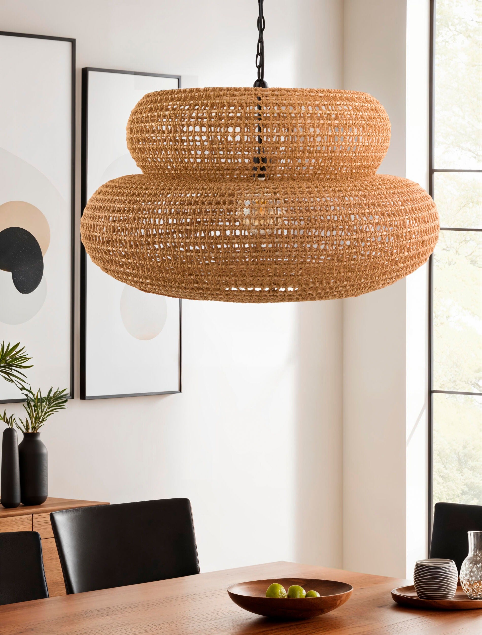 Say hello to the Dobson—where natural texture meets bold design. Handwoven from natural paper, this oversized statement pendant adds instant coastal-cool vibes to any space. Effortlessly airy, sculptural, and unapologetically eye-catching.