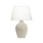 Artfully combining different textures, the voluptuous ceramic base of this diminutive lamp has a mottled effect and is crowned by a crisp off-white linen shade. A chic and understated addition to any modern living room.