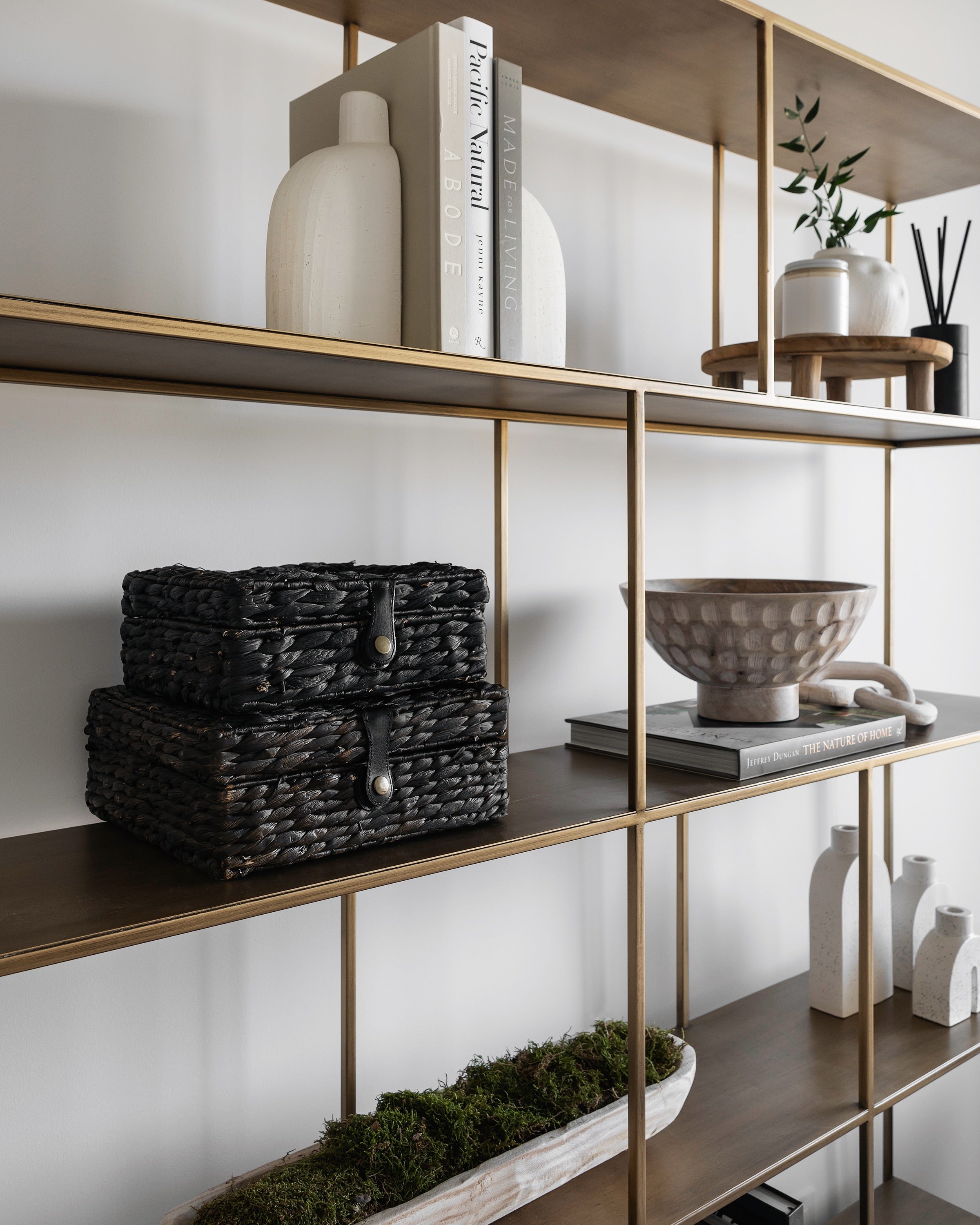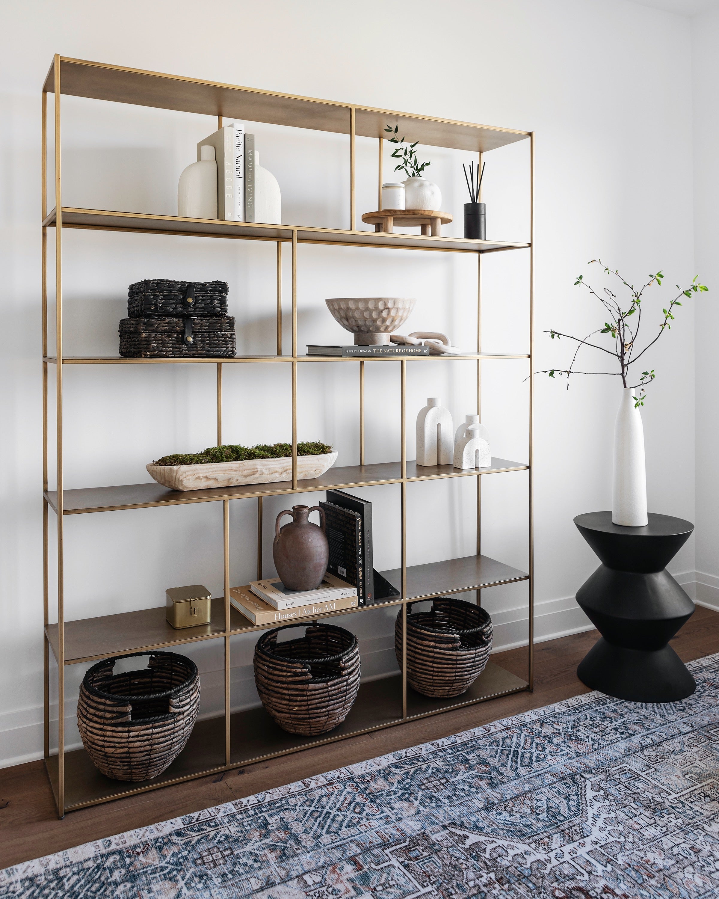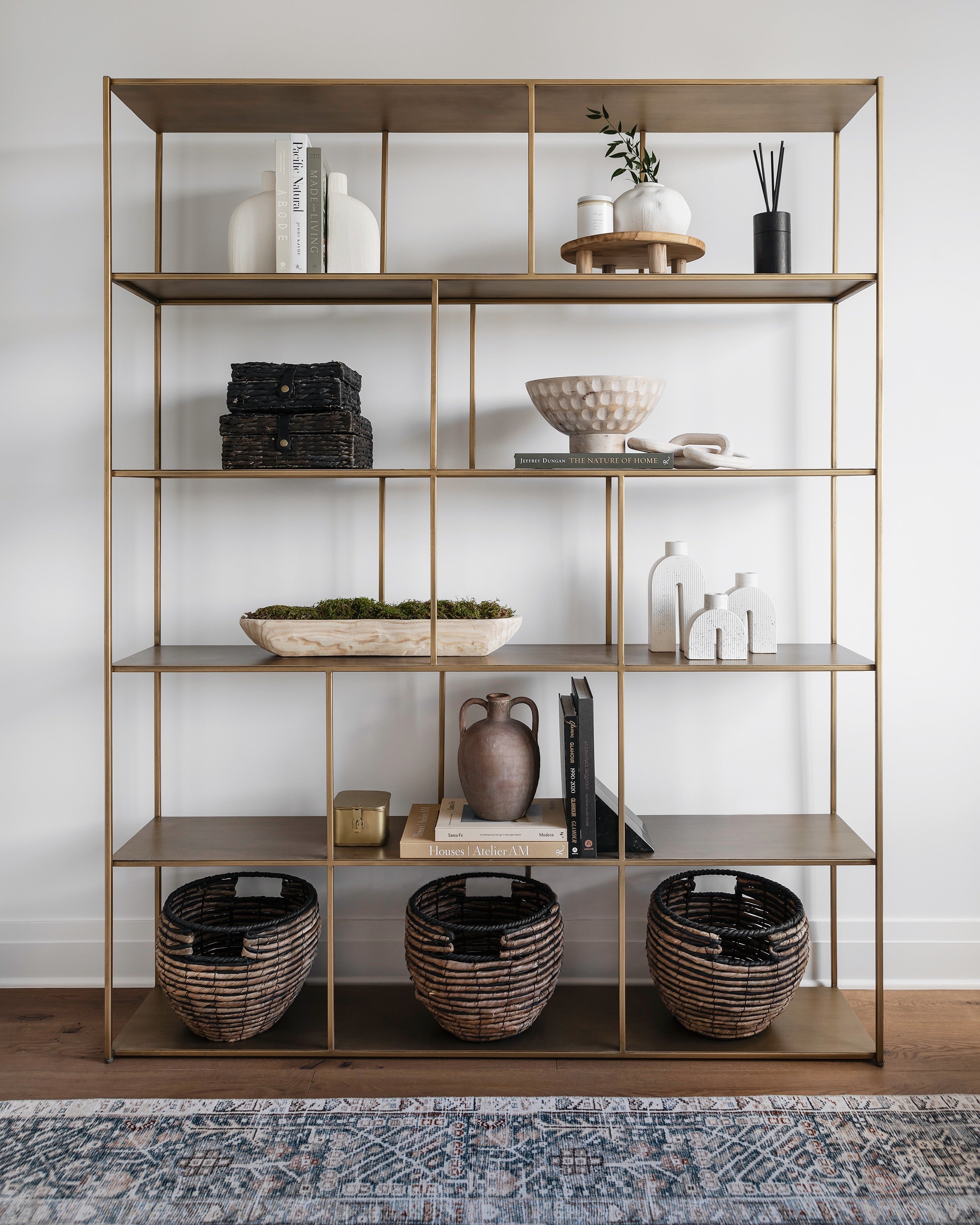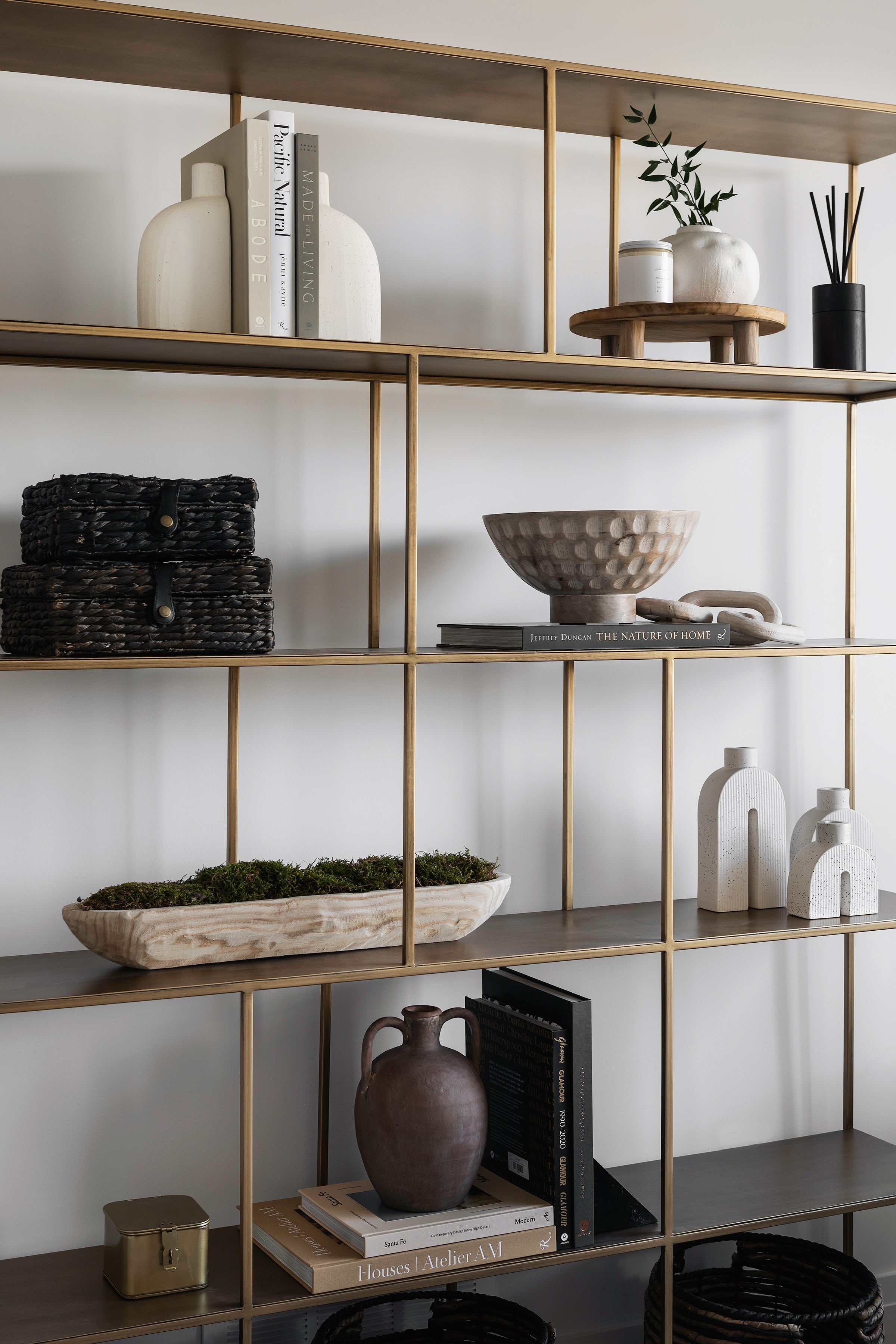 Add style and warmth to living and office spaces with this well-designed iron bookcase.