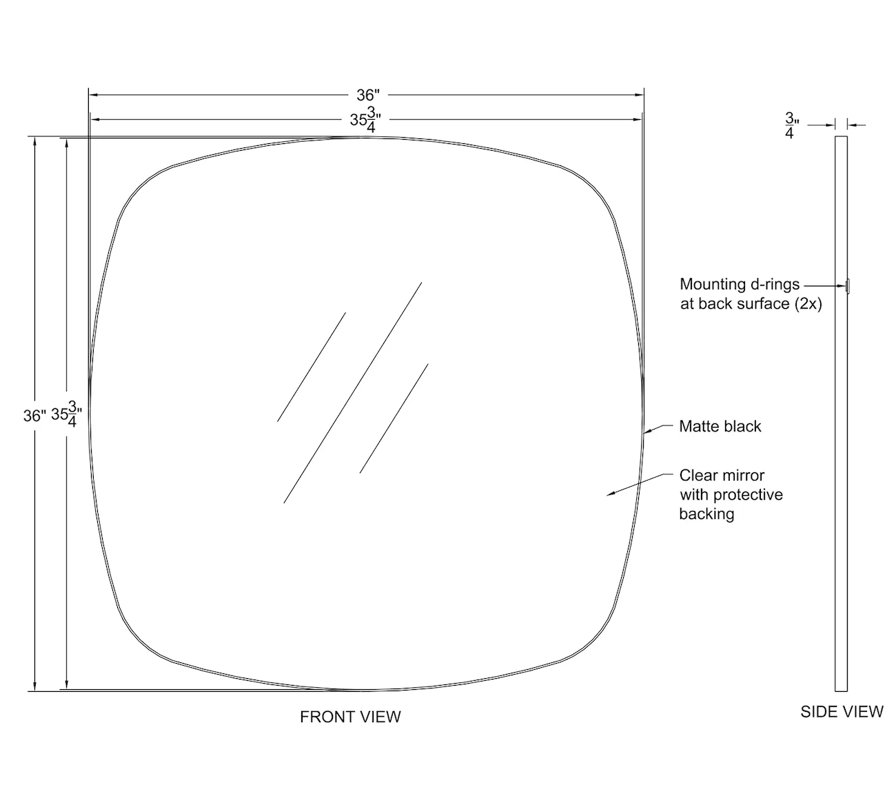 Dimensions: 36''W X 36''H X 1''D