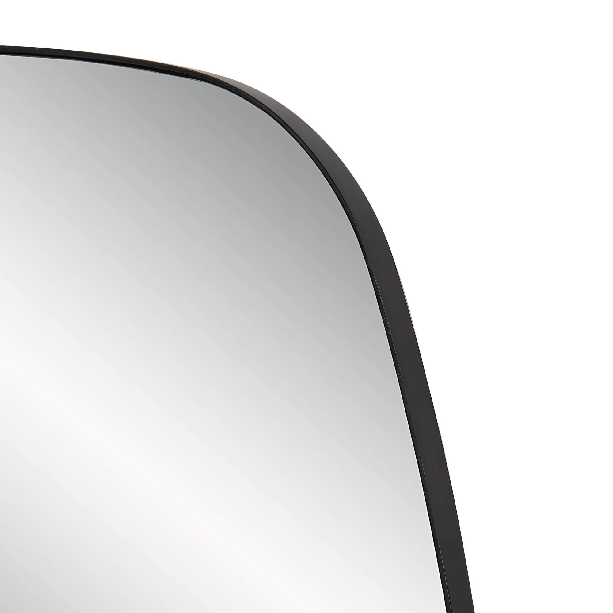 The elegant, polished mirror gets a touch of personality through uniquely rounded edges in this framed design. Set in an entryway space, this mirror offers one a spot to check their reflection before coming and going every day. Thanks to its matte black iron frame, this mirror easily integrates into many interior styles from the industrial and contemporary to the mid-century modern.