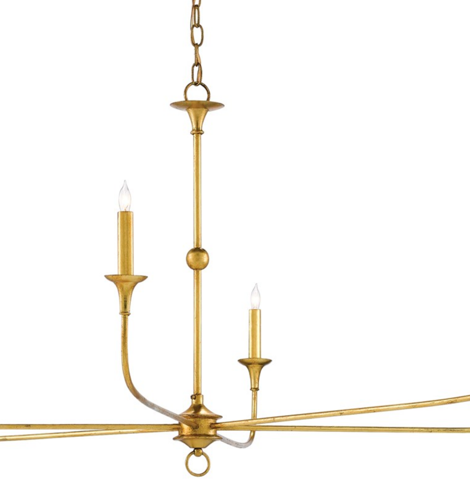 Long arms stretch gracefully from a small cog, which is ornamented with a ring, that rests at the bottom of the stem of the Florance chandelier. Though it is a seriously minimalist fixture, the profile of the six-light chandelier has a lovely fluidity to it that makes it a natural choice for traditional and transitional interiors.