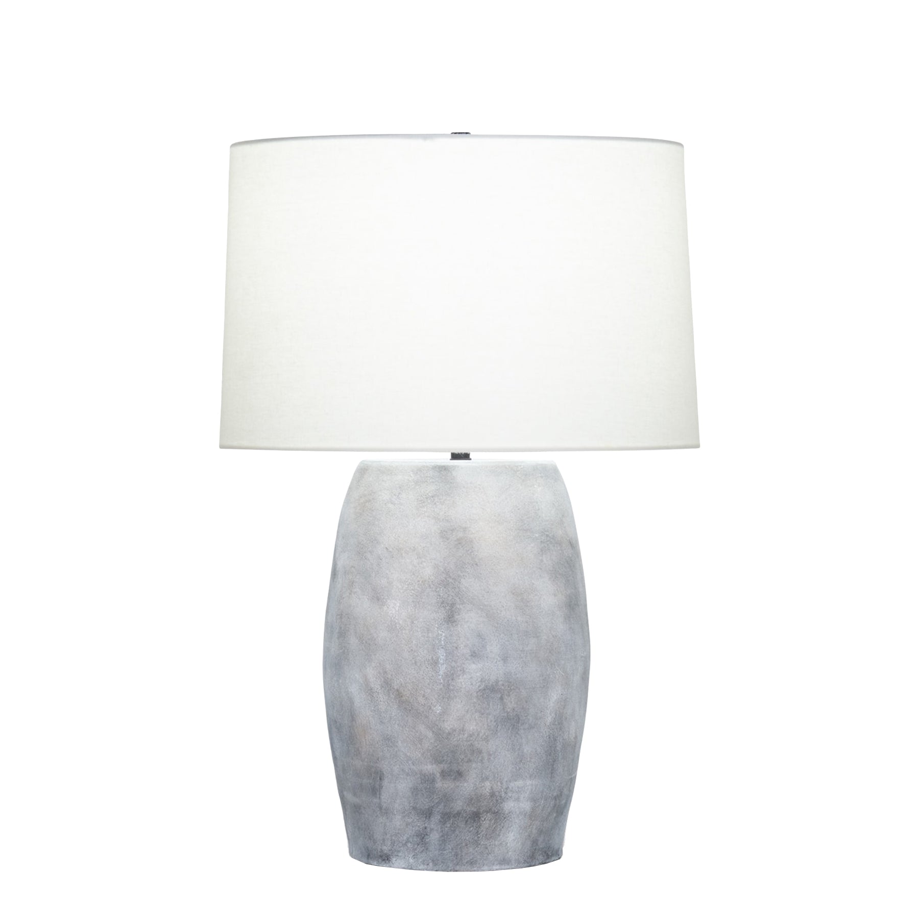 A stone-like look is actually ceramic with a grey finish on this table lamp, which is has a curvy silhouette and a beige linen shade. Place this lamp in an office or living room for some natural flair.