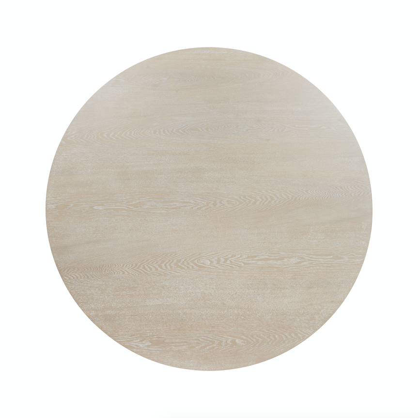 The Greer round dining table makes the most of its modern, minimalist shape. The tripod wood base offers a handsome, sturdy foundation, and the natural cerused finish amplifies striking, textured oak grain. Greer comfortably seats six.