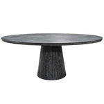 Our Jeffery oval dining table makes the most of its classic, minimalist silhouette. The tapered wood base has a stately presence, and black cerused finish amplifies its natural, textured oak grain.