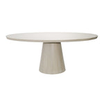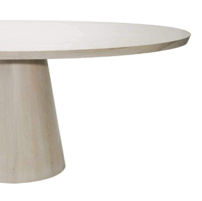 Our Jeffery oval dining table makes the most of its classic, minimalist silhouette. The tapered wood base has a stately presence, and natural cerused finish amplifies its natural, textured oak grain.