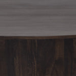 Inspired by global travels, this round, handcrafted drum-style coffee table will certainly add wonder to any space. Made from dark brown solid mango wood. With refined craftsmanship, this design was brought to life by skilled local artisans.
