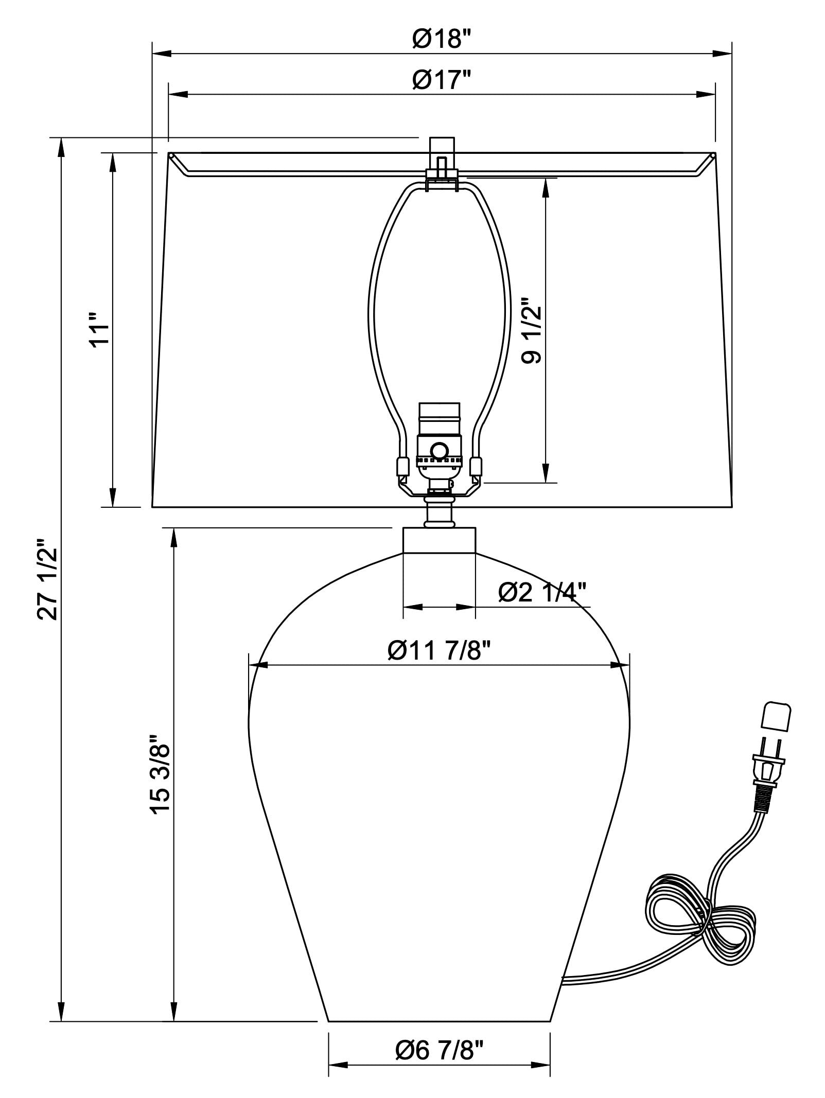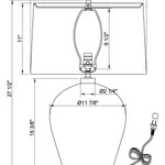 Dimensions: 6.8" W, 27.5″H; Shade: 17″ø(t) x 18″ø(b) x 11″H