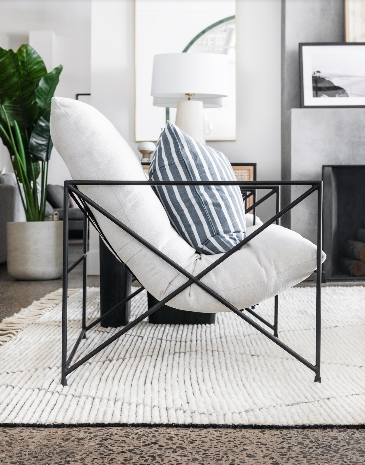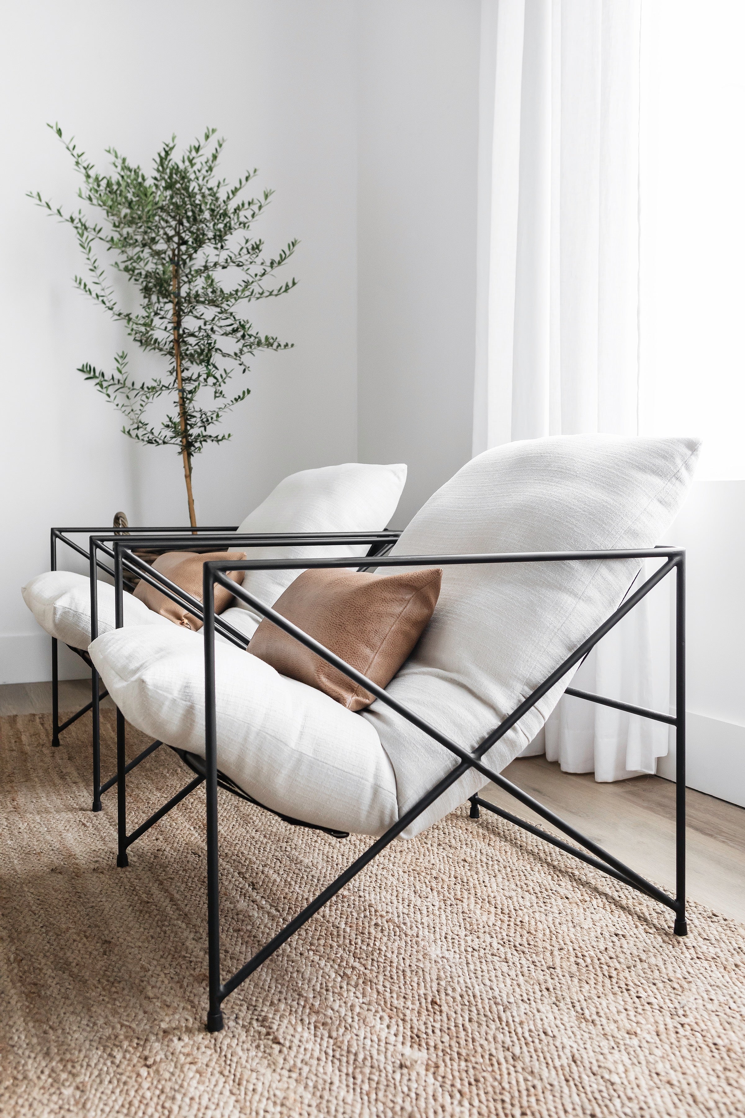 The Leona is an exceptionally comfortable lounge chair that features a perfectly padded, fabric-wrapped seat rested atop a solid metal frame.