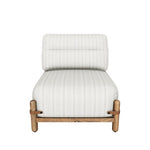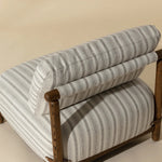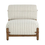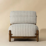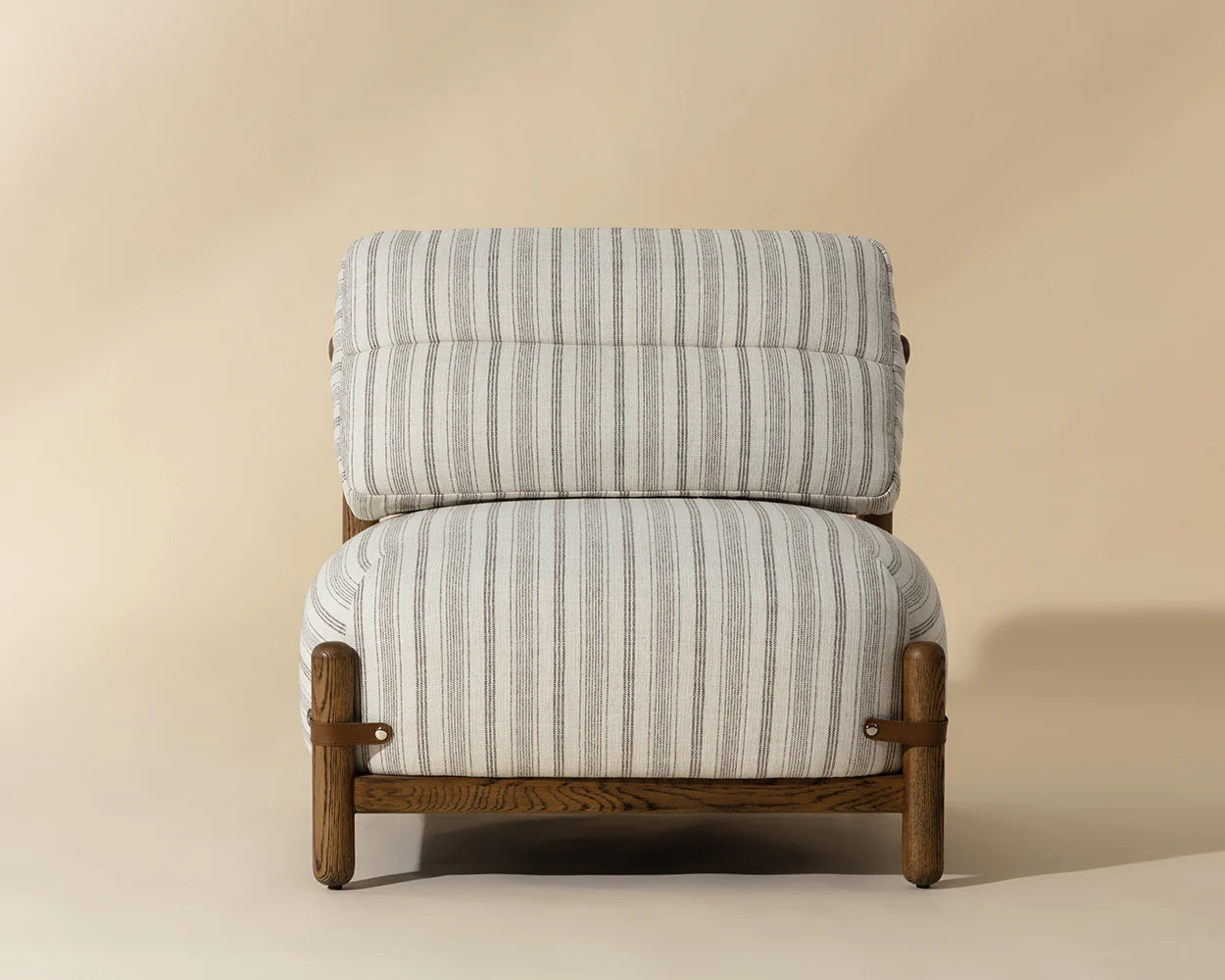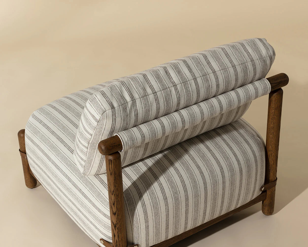 Blending casual elegance with timeless charm, the Lester Lounge Chair effortlessly elevates any space. Its relaxed silhouette and classic striped print exude a sense of laid-back luxury. Crafted with a sleek brown oak wood frame, it provides sturdy support for the plush cushions, which are upholstered in soft Gifford Script fabric. Thoughtful leather strap detailing adds a refined touch, perfectly complementing the airy, mid-century-inspired design. Ideal for creating a cozy yet sophisticated vibe in any room.