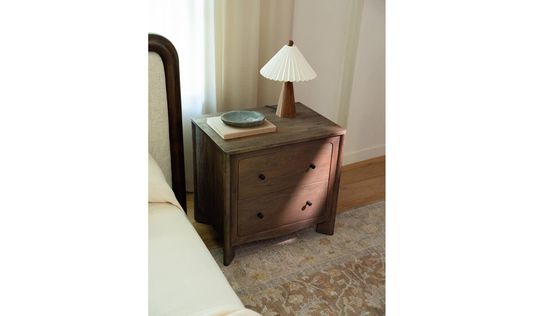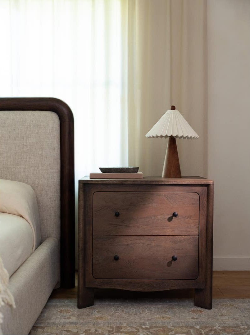Curve meets edge. Mabel is all about sculptural detail done right. A curved base gives a subtle nod to tradition, while inverted diagonal legs add lift and a modern twist. The wire-brushed Acacia brings out texture and tone, highlighting the wood’s natural grain. Compact, confident, and grounded by design.