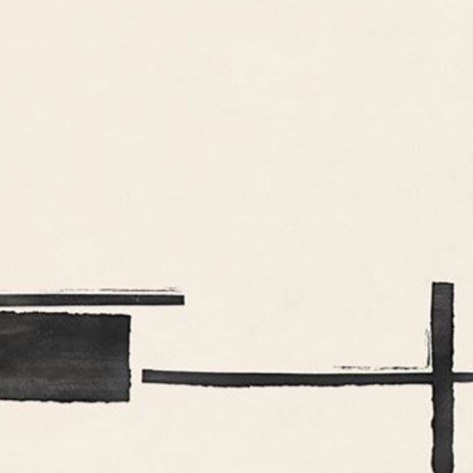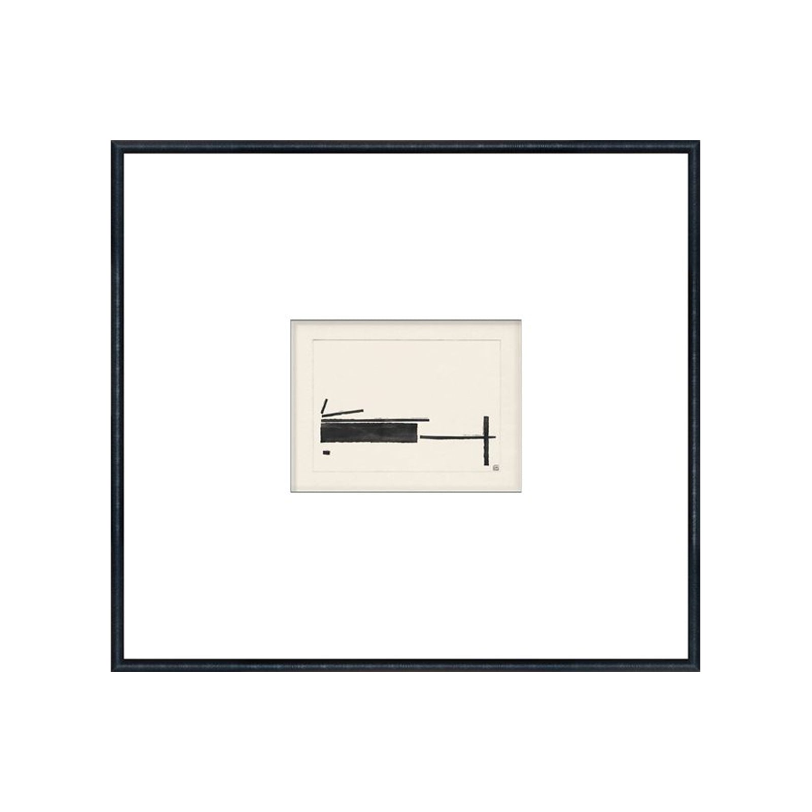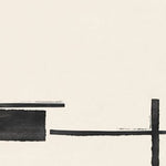 Abstract images created from arrangements of little dark textured shapes on antique paper background. Finished in a textured black frame and a matte with a dark core that creates a bold line around the image. to play with.
