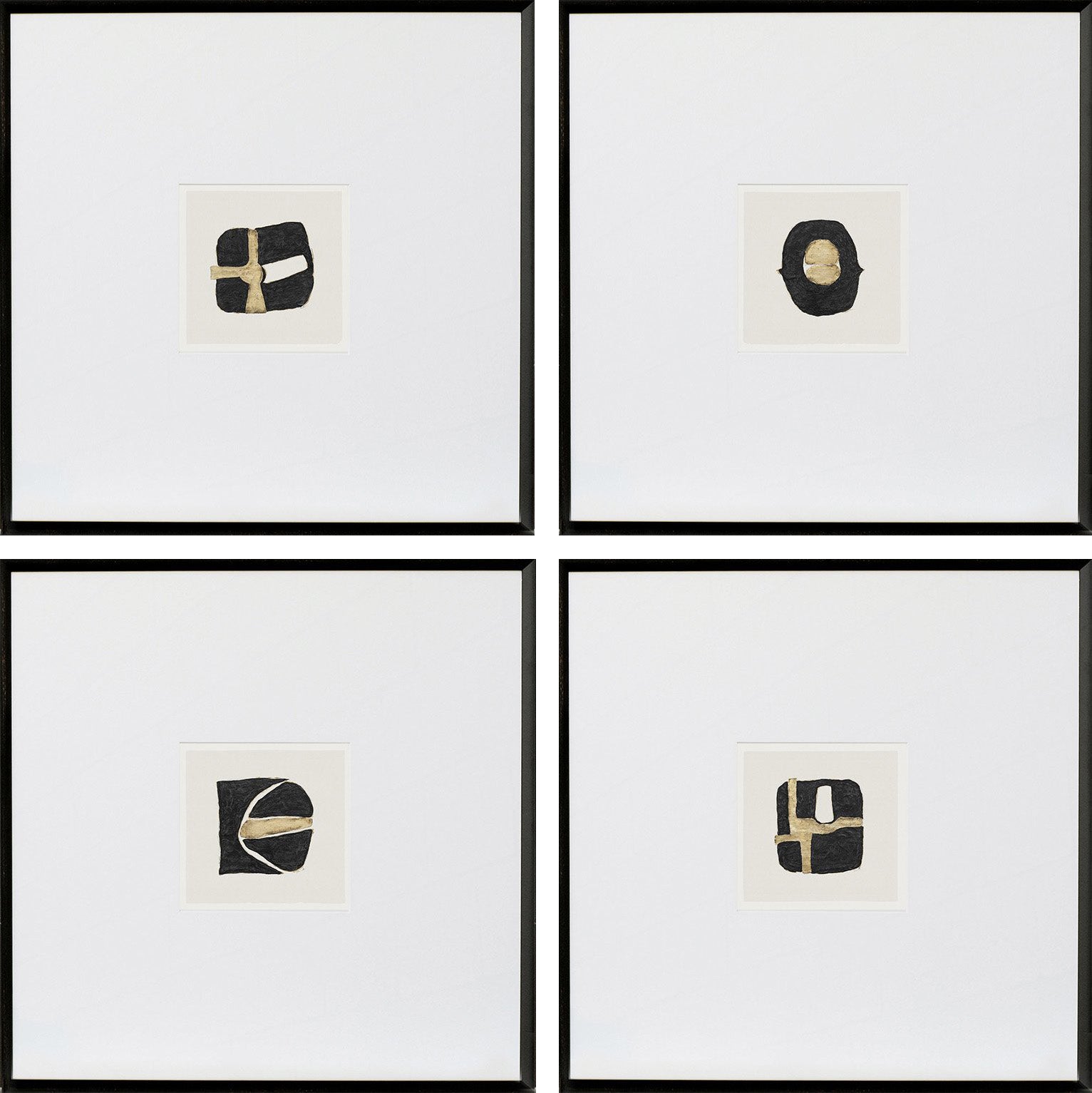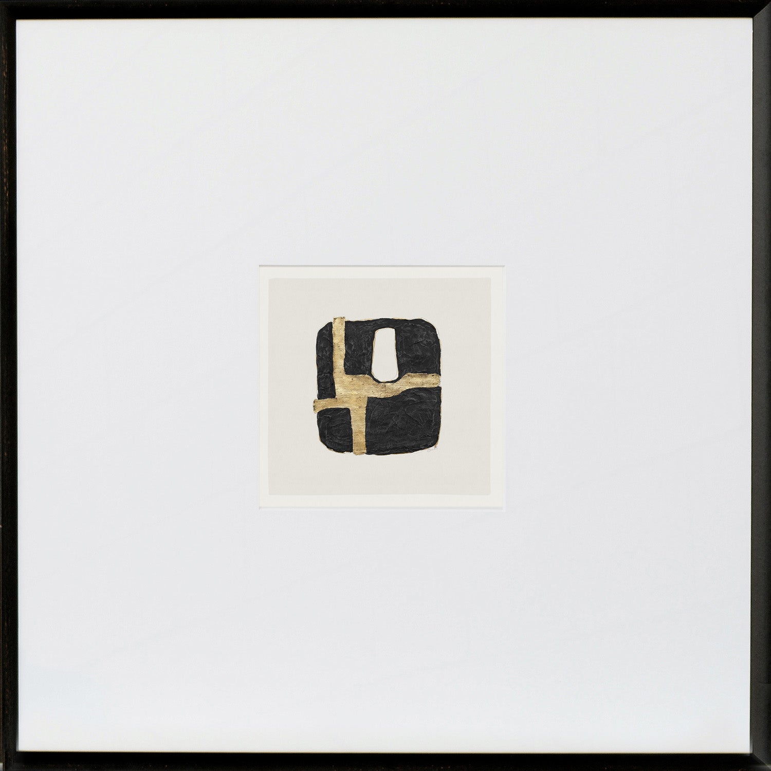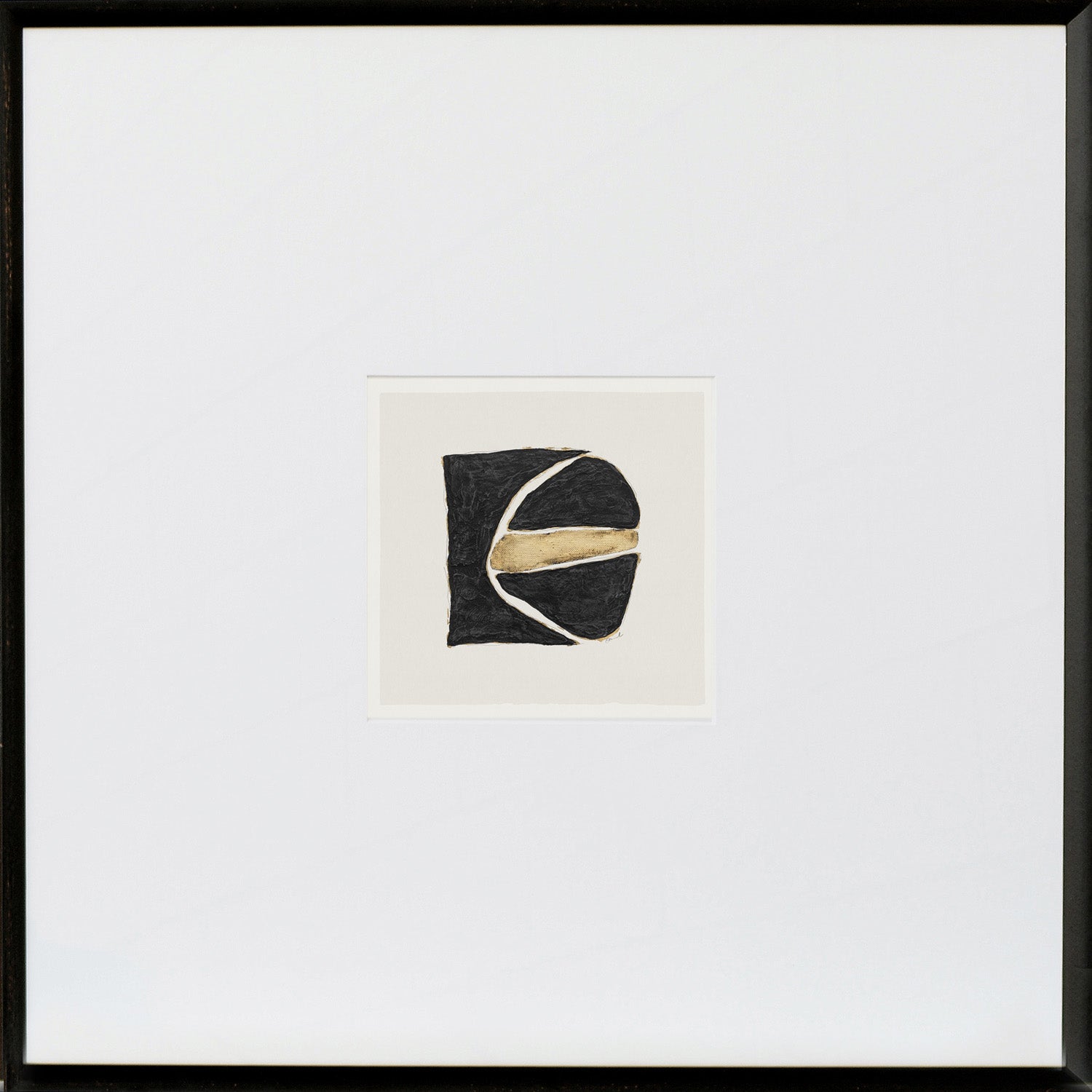The impact of these precious little, mid-century inspired, black and white images is heightened with finely textured gold gild. Placed within an oversize matte and minimal black frame. Each frame is sold separately.