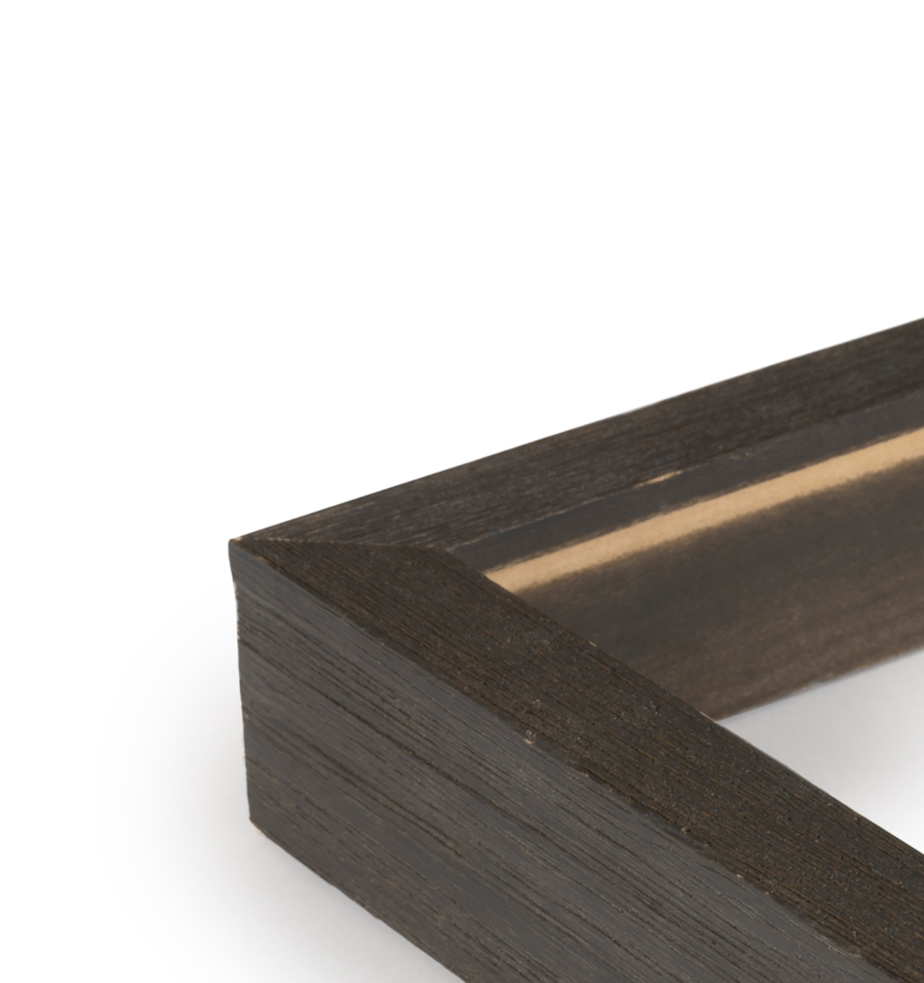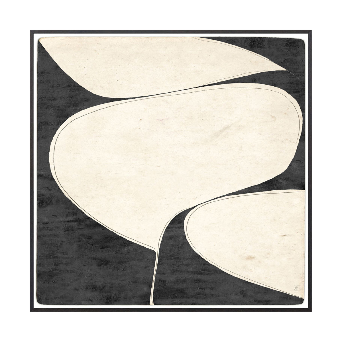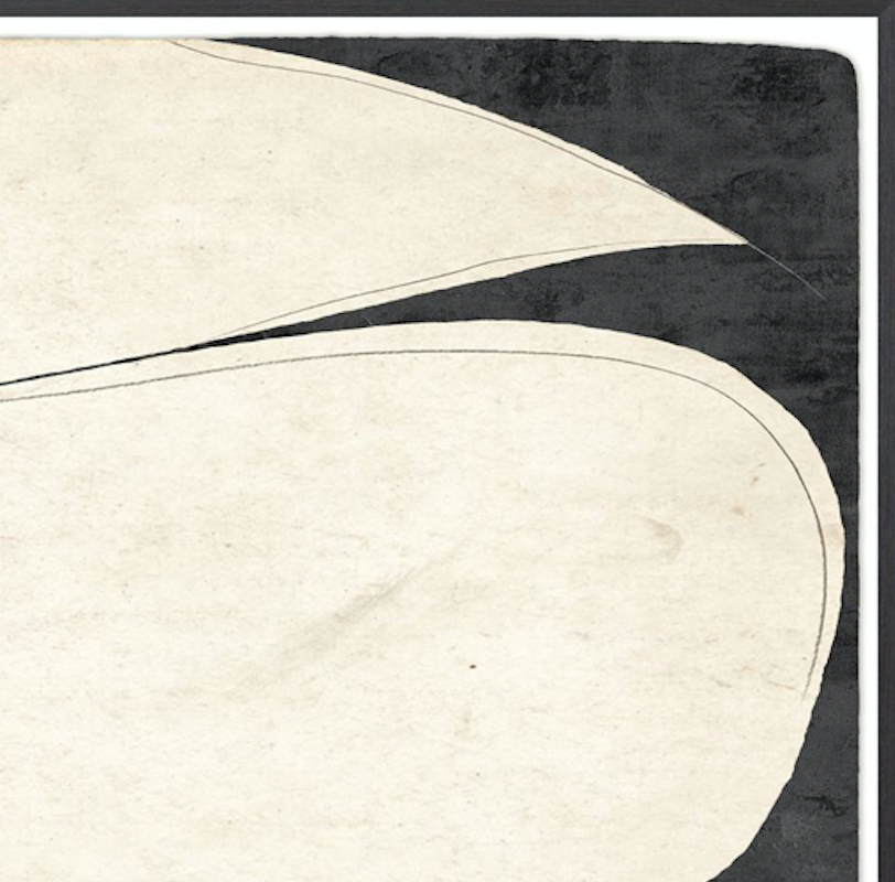 The shapely forms of these four contemporary, minimal compositions are well played out in graphic black and white. Found here in the largest size, they are finished with a minimal, rustic charcoal frame.