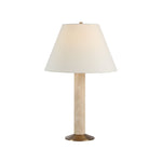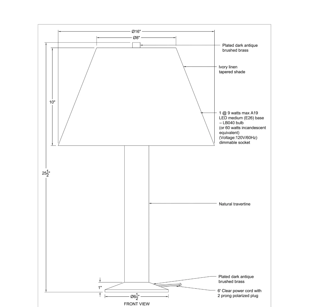 A blend of two classic materials, this stunning travertine and dark antique brushed brass table lamp is ready to update any contemporary or transitional setting. Crafted in shades of cream and ivory it features a linen tapered drum shade that complements a natural stone base and diffuses soft, dimmable light throughout the space, creating the perfect vibe for any occasion.