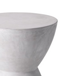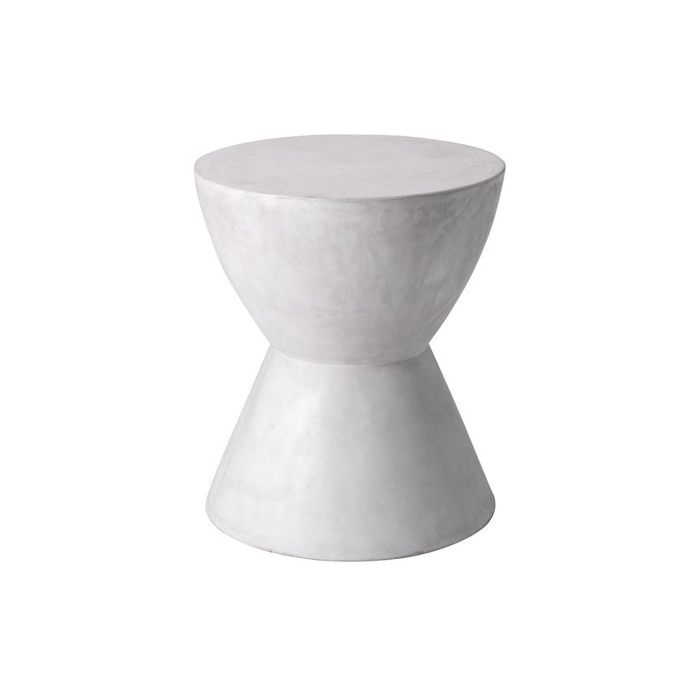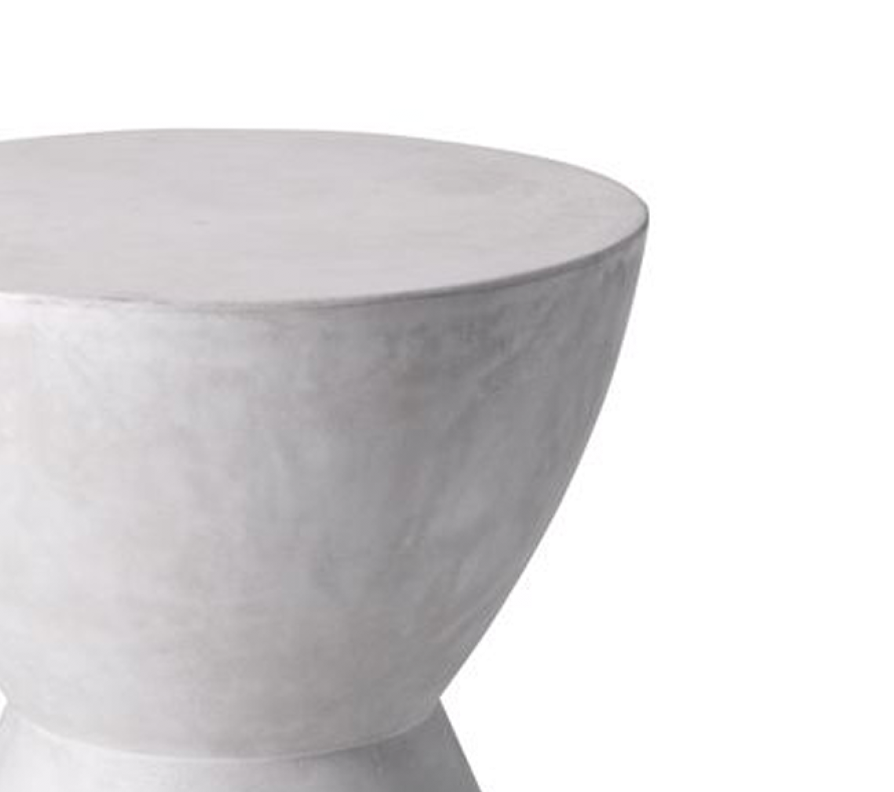 A sculptural round end table designed for contemporary and urban spaces. Made of concrete with each finished differently for an industrial look. Suitable for indoor and covered outdoor spaces.