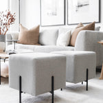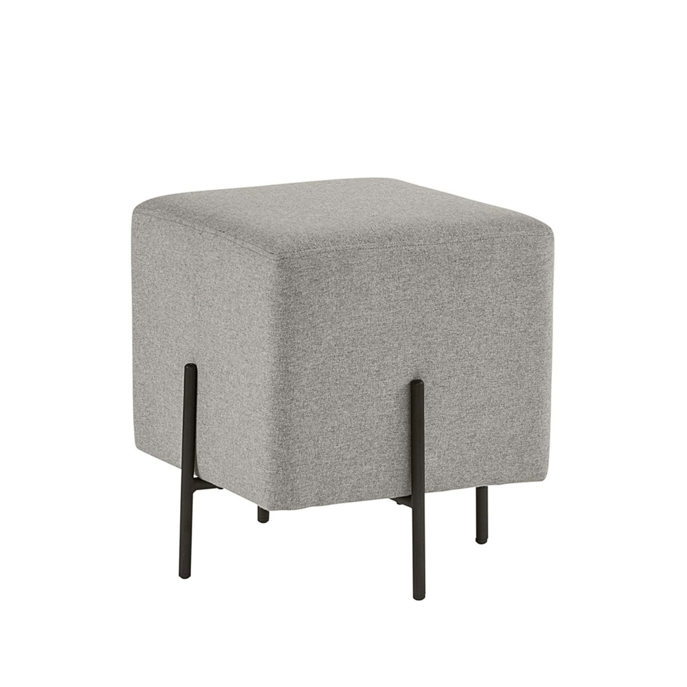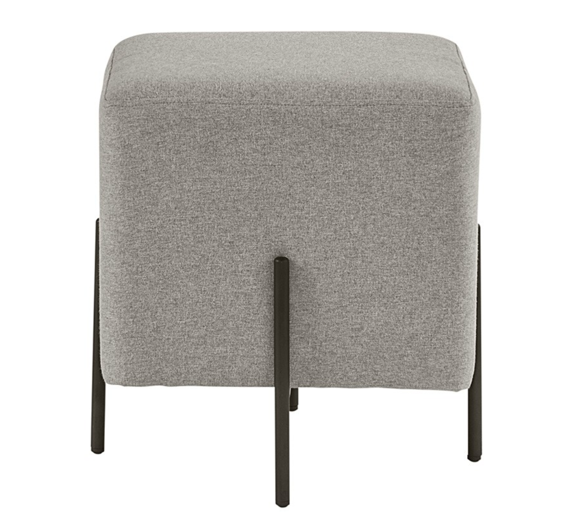 This compact square ottoman will add a minimalist mid-century style to any space. A tubular black powder coated steel frame creates additional intrigue. Performance fabric is moisture repellant, stain resistant and easy to clean.