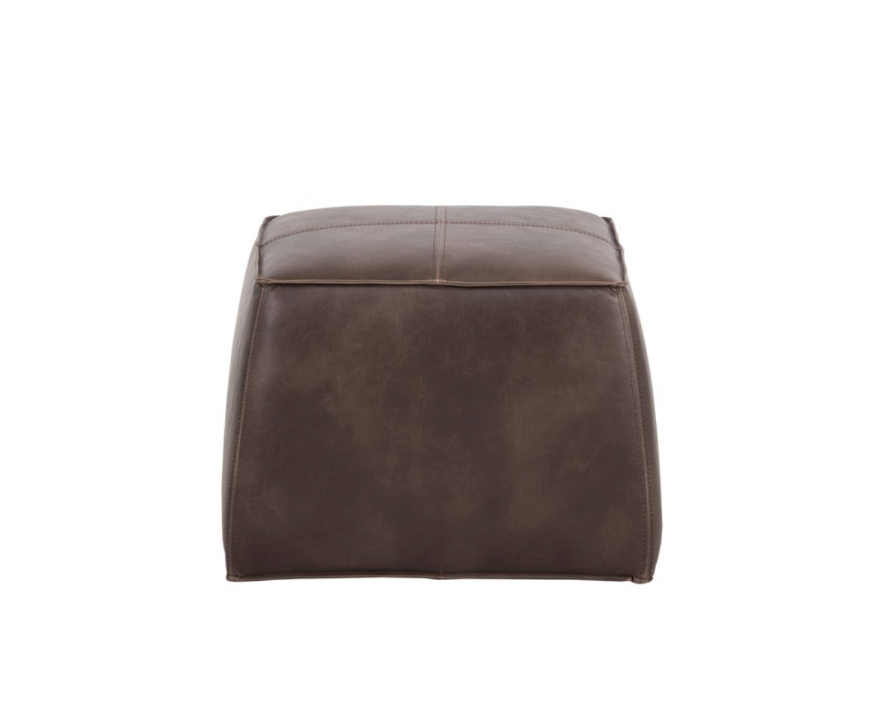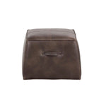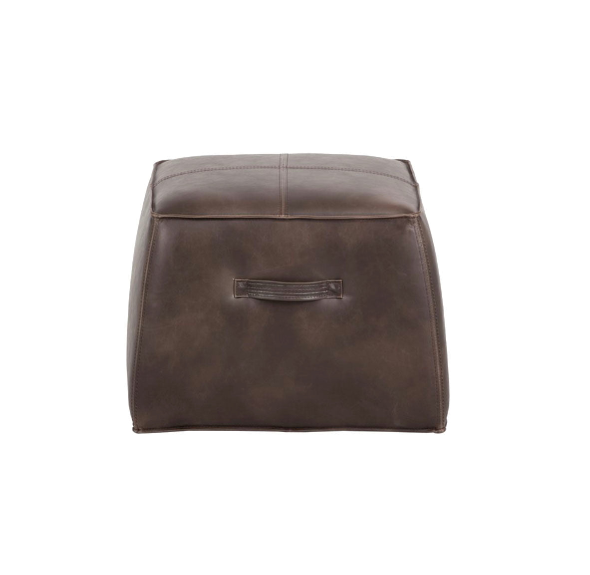 A handsome cubed ottoman in a vintage-look havana brown faux leather. Features a handle and exposed stitching for added function and detail. Suitable for residential and commercial environments.