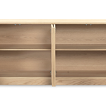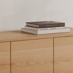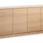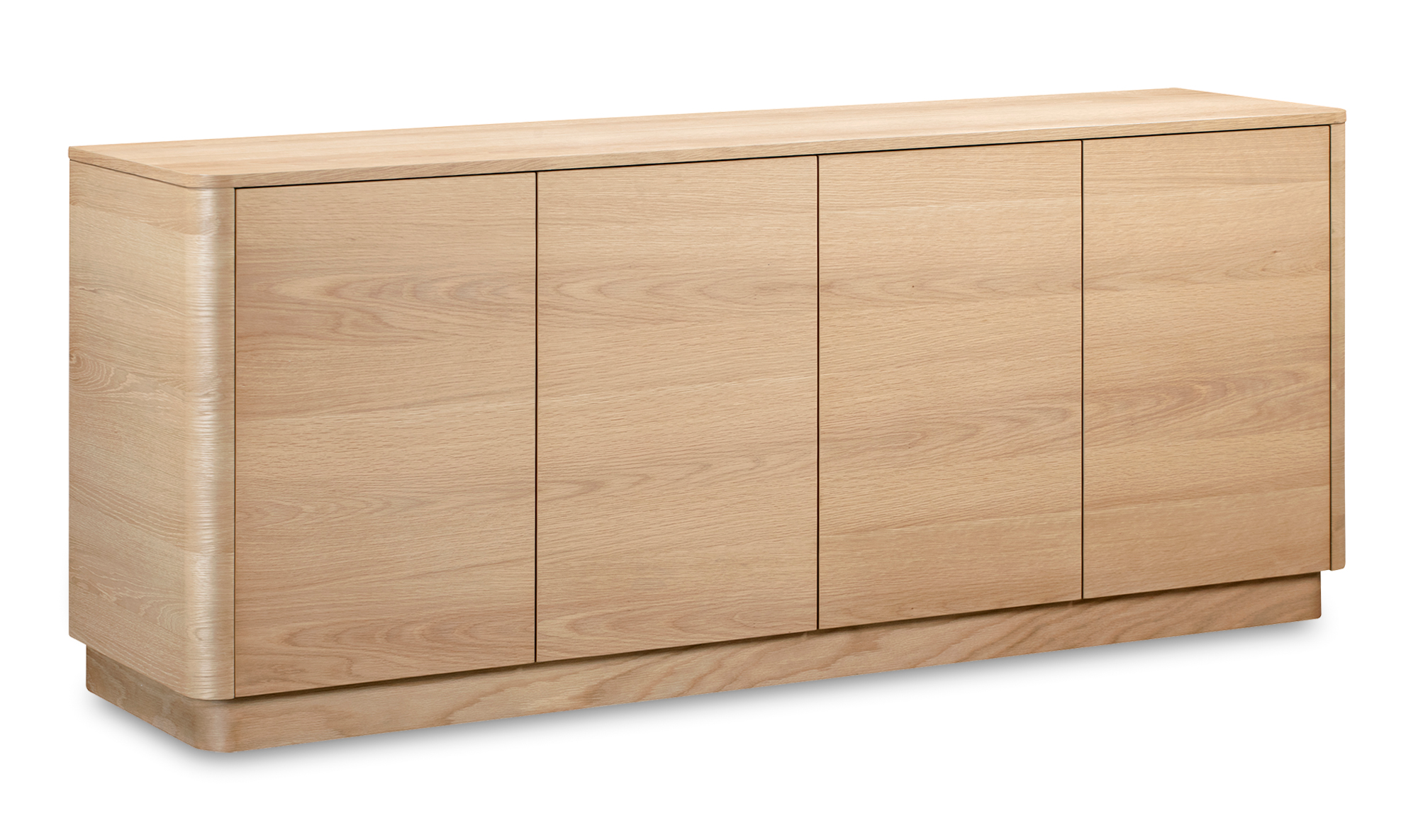 Natural allure meets minimalist design. The Round Off sideboard celebrates the captivating tones of natural wood grain, seamlessly integrated into a soothing design, embracing natural beauty and character. This sideboard boasts gently rounded corners and four doors that open to generous storage space while embracing oak's natural beauty and character.