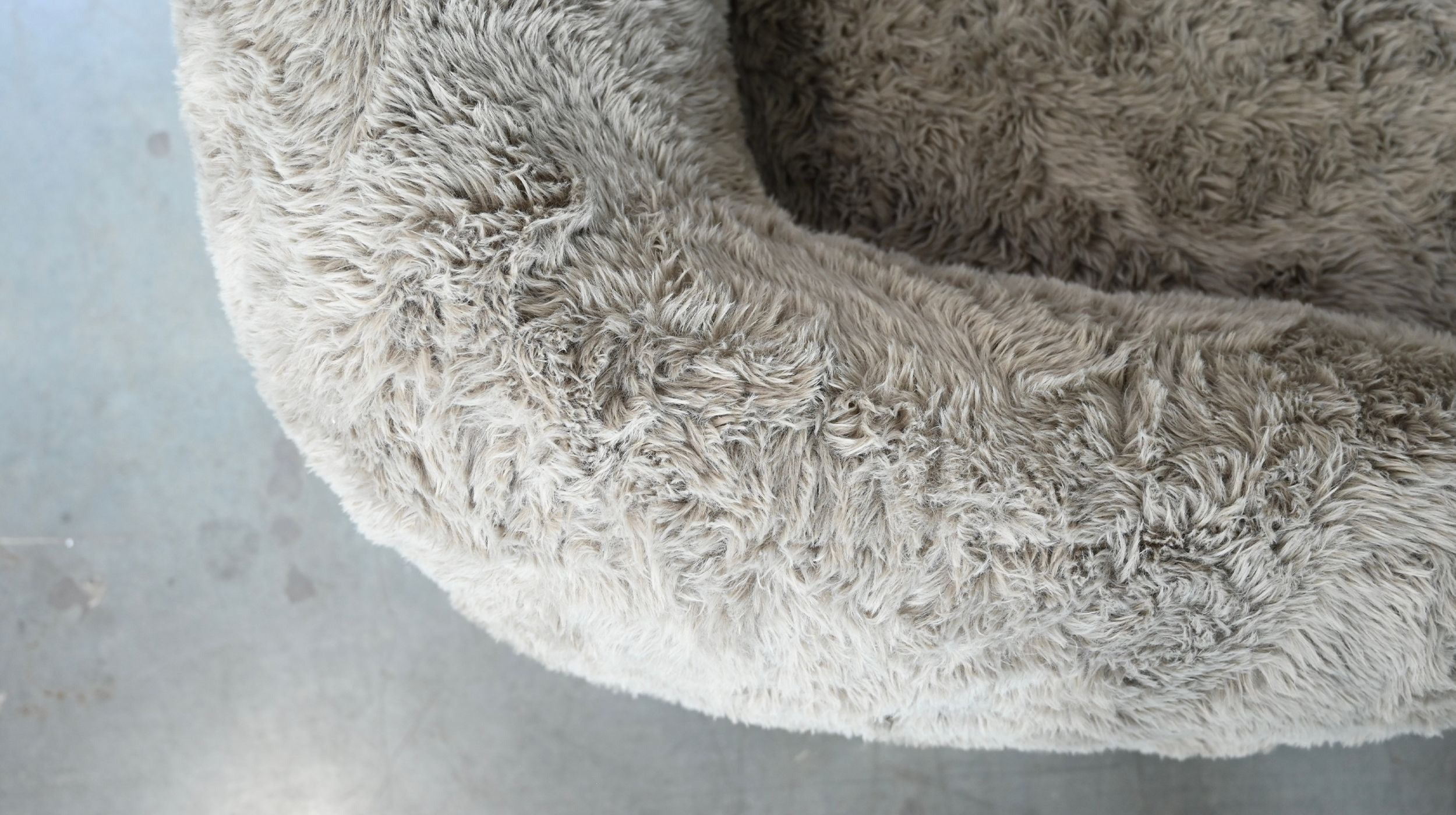 The SABA lounge chair offers both comfort and style with its plush faux fur upholstery. The combination of foam and feather filling ensures a cozy seating experience, while the wood framing provides durability and lasting support.