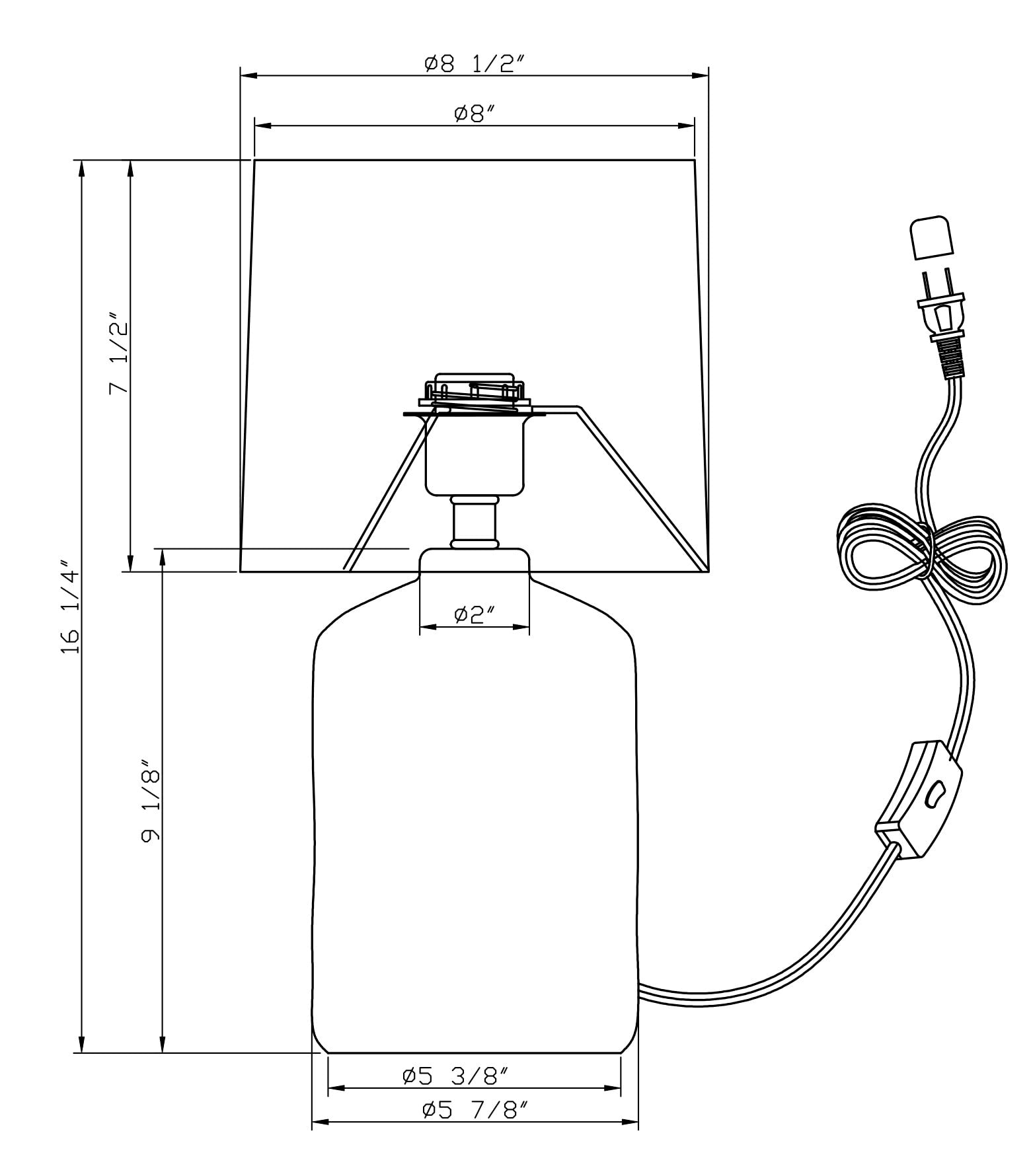 hade: 8″ø(t) x 8.5″ø(b) x 7.5″H