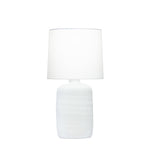 A sophisticated textured imprint across the tapered base highlights the beauty of this diminutive table lamp. A classic look with a modern touch of detail that pairs perfectly with the off-white linen fabric shade. This neutral, yet striking, lamp will blend into any interior with ease.