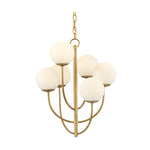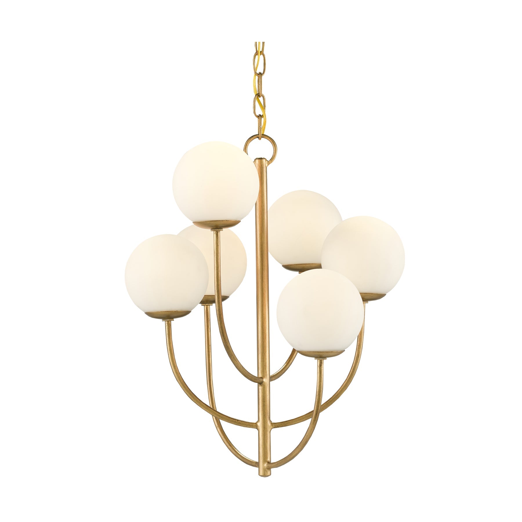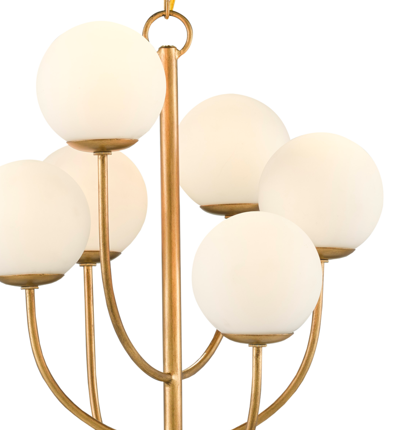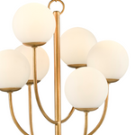 When mid-century modern was at its height, white glass globes were central to the designs produced by some of the greatest visionaries who’ve ever conceived products for the home. The Sunny pendant has this verve in its DNA. Made of wrought iron in a new brass finish, the long thin stem and arcing arms hold six opaque white glass globes in a staggered design that makes it seriously chic.