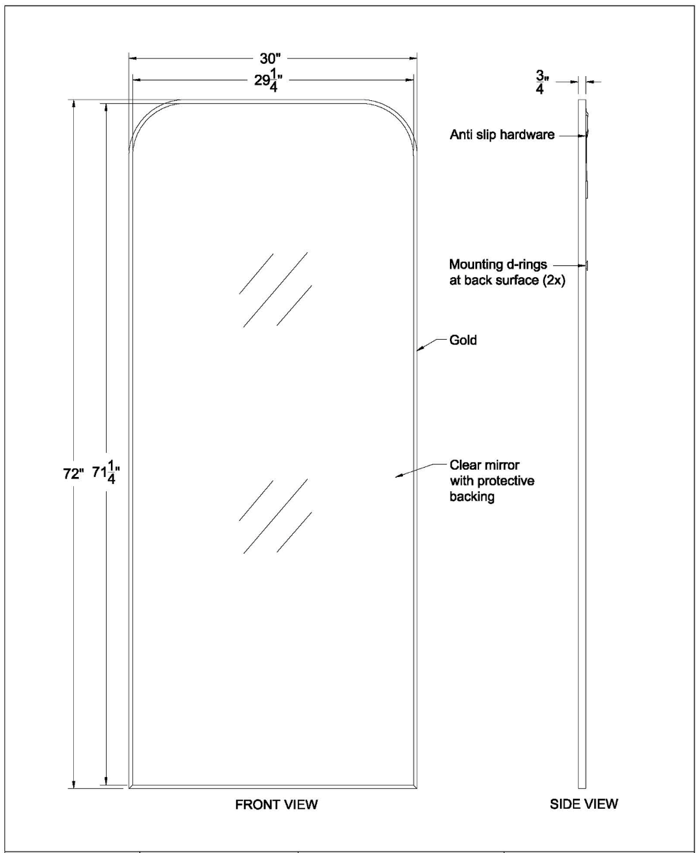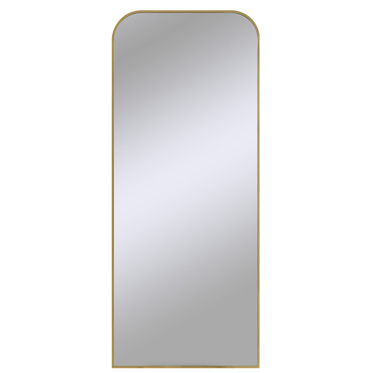Luxe yet laidback, this towering full-length mirror design completes the designer quality appeal of the home interior. Ideal for a homeowner seeking to elevate and expand the appearance of their living room, bedroom or entryway, this full-length mirror's lustrous quality reaches every corner of the room. Showcasing a power-coated gold frame, this essential accessory fits idyllically in traditionally glamorous mid-century modern and contemporary spaces.