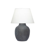 Artfully combining different textures, the voluptuous ceramic base of this diminutive lamp has a mottled effect and is crowned by a crisp off-white linen shade. A chic and understated addition to any modern living room.